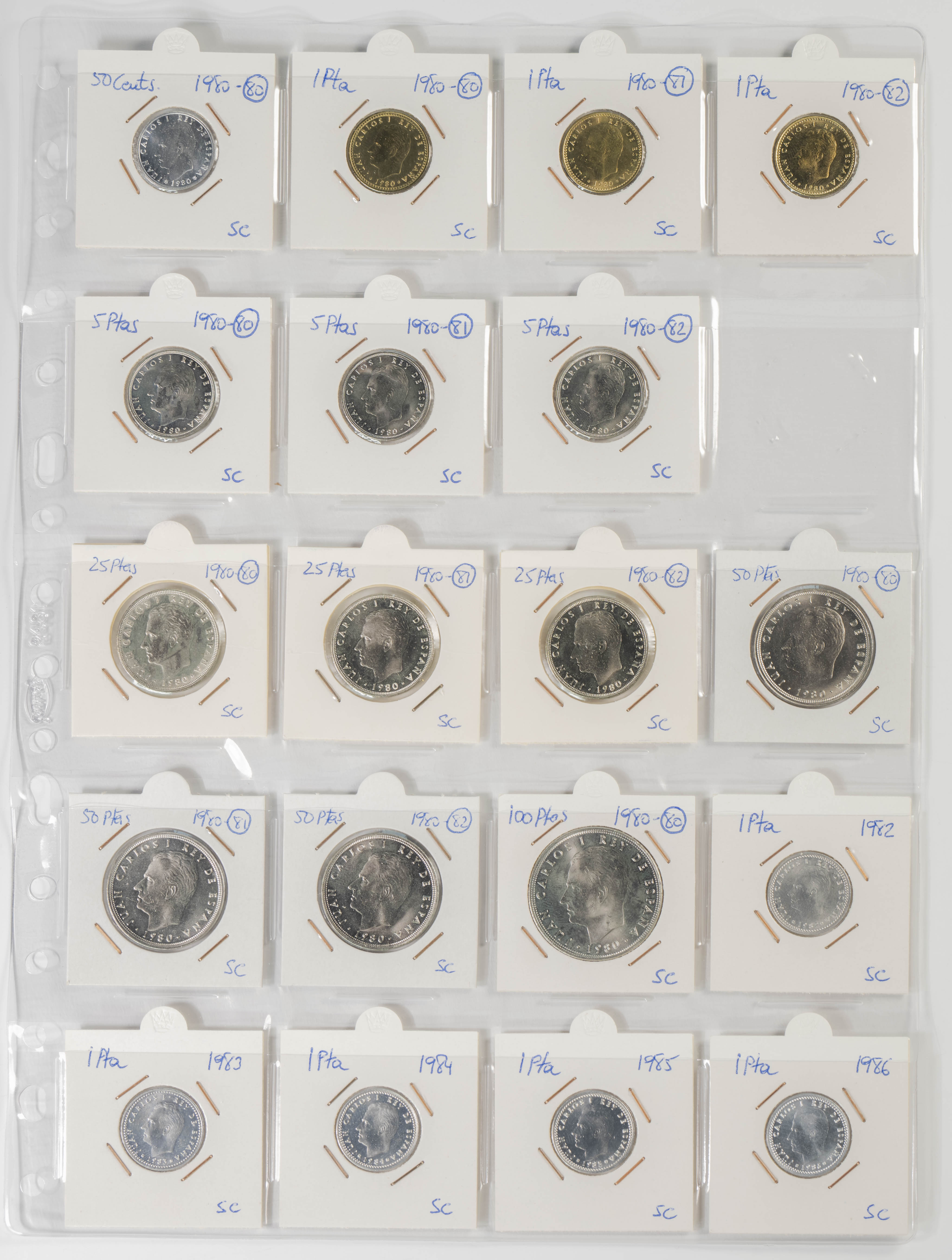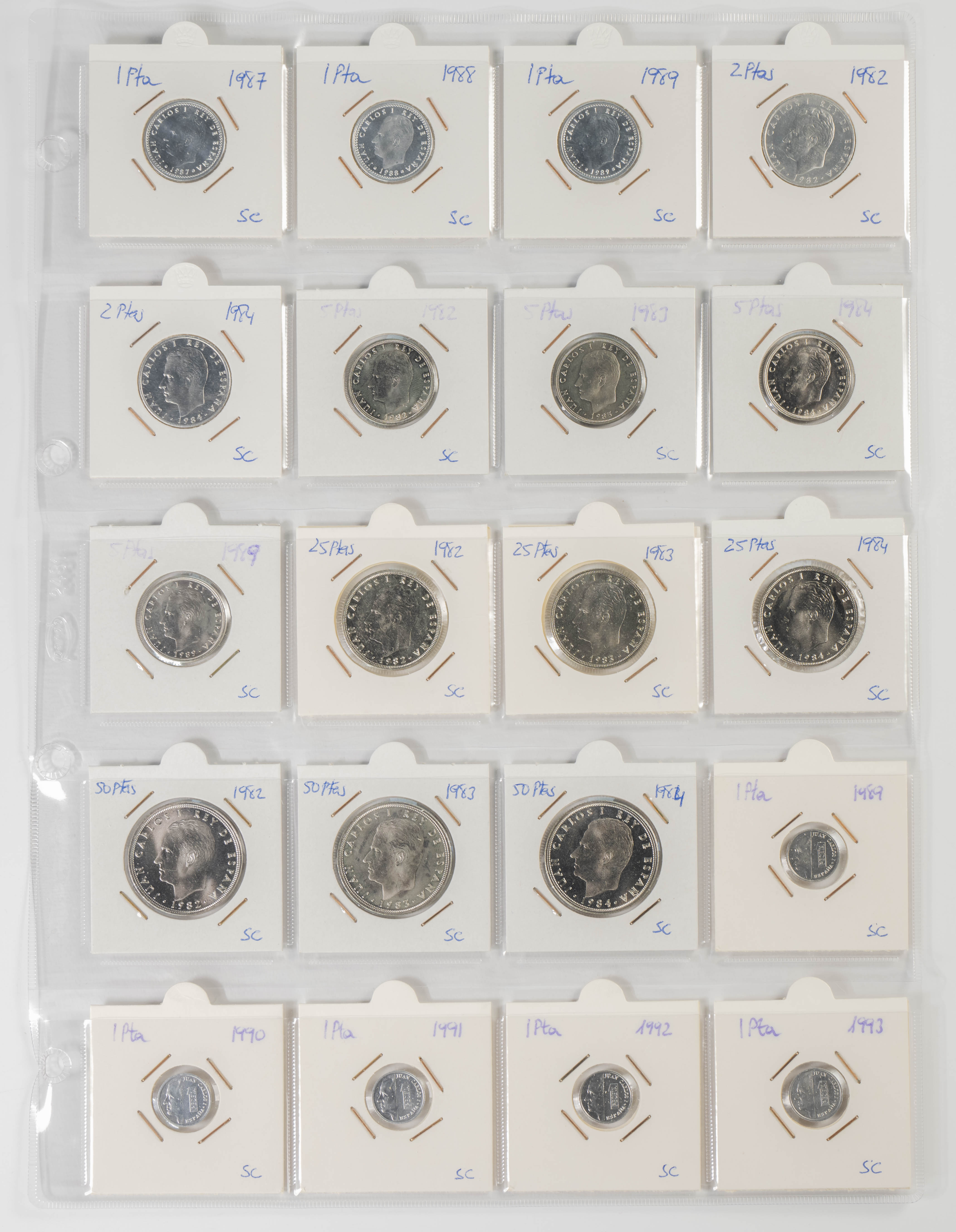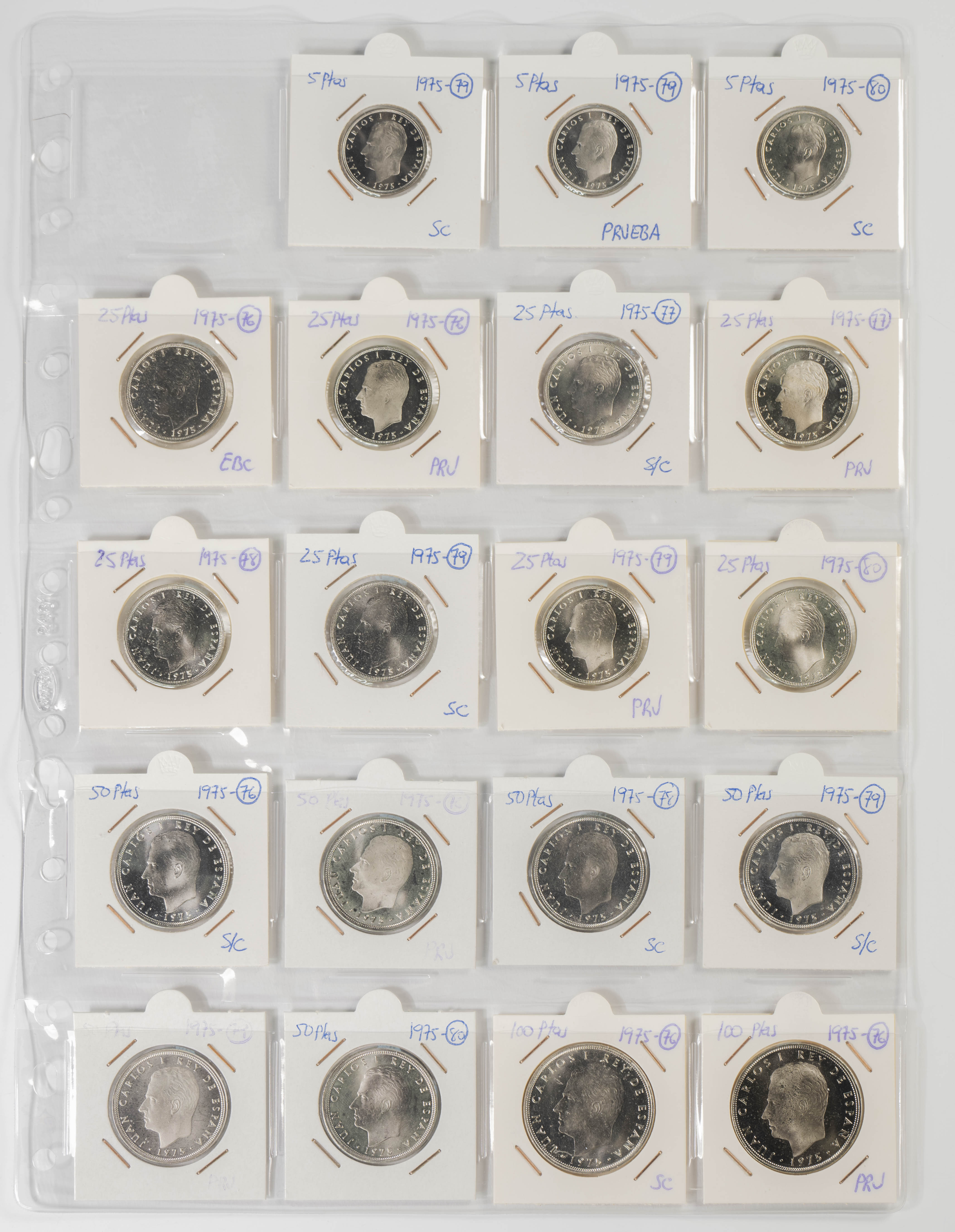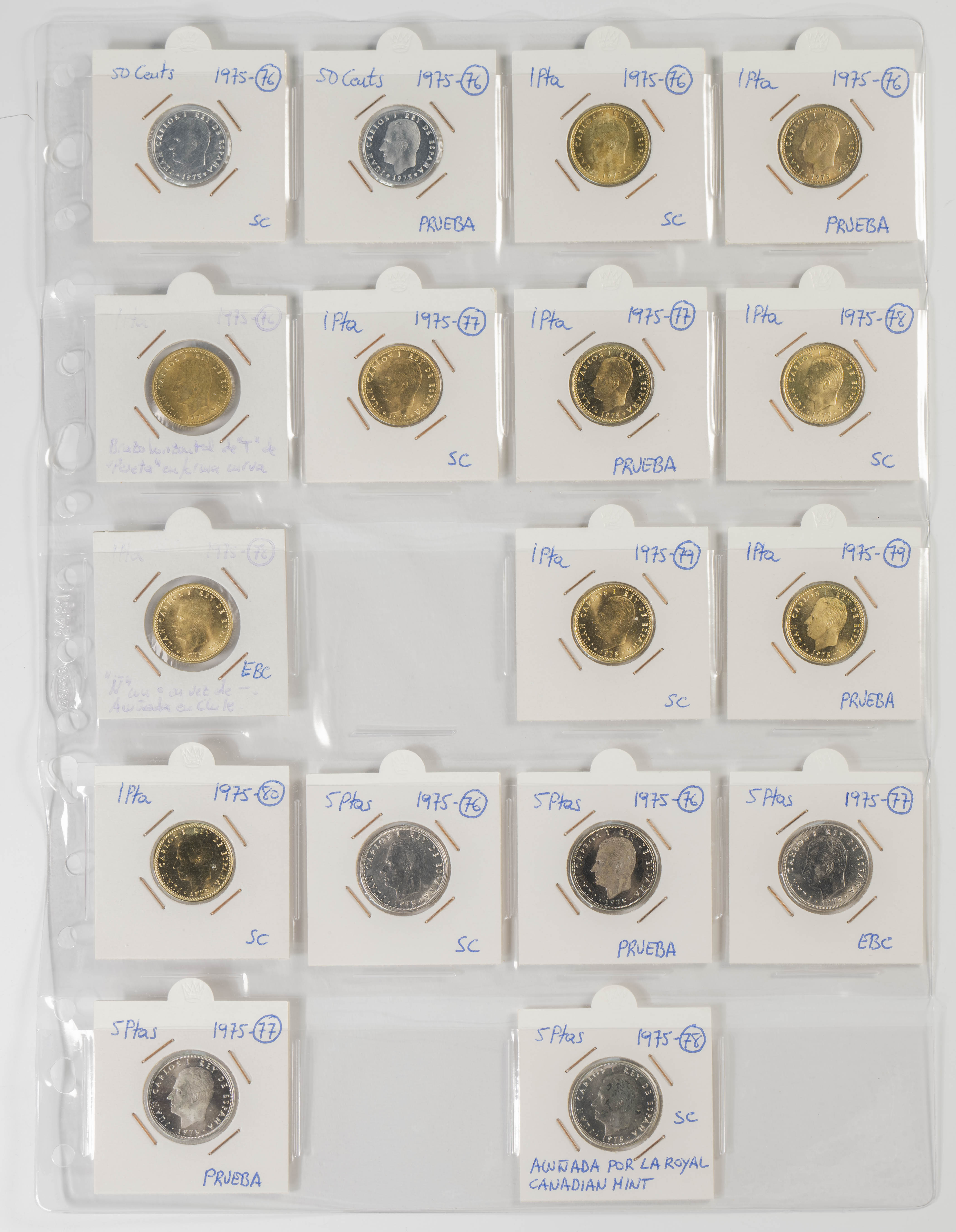 ESTADO ESPAÑOL Y JUAN CARLOS I. Excelente resto de colección formado por centenares de piezas de ambos peridos y expuestas en 2 álbumes. Variedad de módulos, materiales (incluida la plata) y fechas, sin apenas monedas repetidas. El conjunto se completa con algunas medallas, fichas de casinos así como algunas variantes. Muy buen estado de conservación en general, destacando la parte de Juan Carlos I con todas las piezas prácticamente SC. A EXAMINAR.