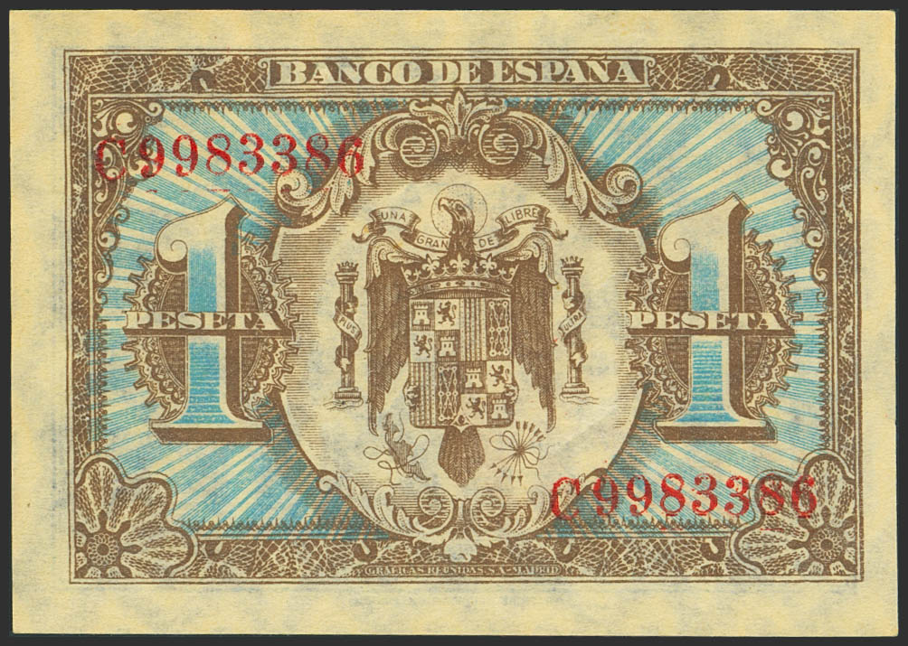 1 Peseta. 1 de Junio de 1940. Serie C. (Edifil 2023: 441a). Conserva todo su apresto original. SC-.
