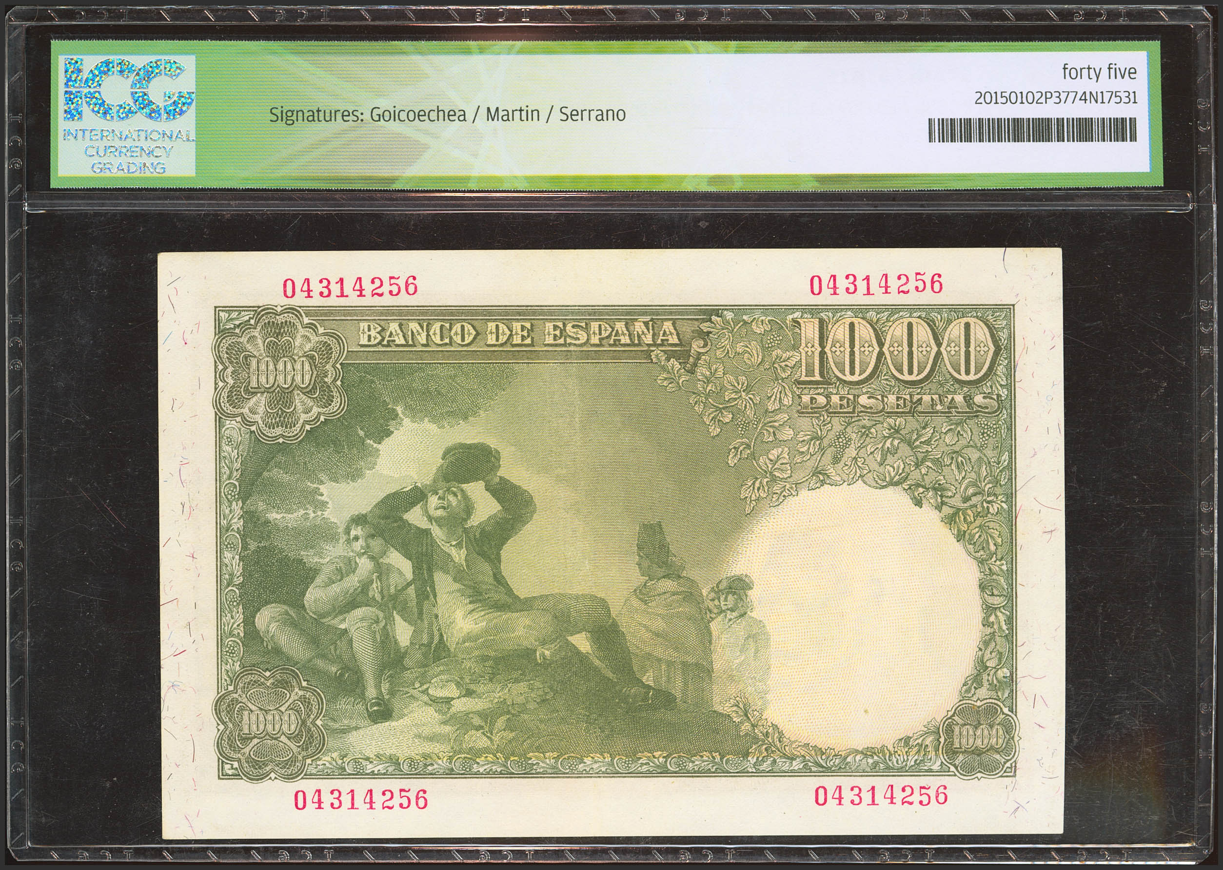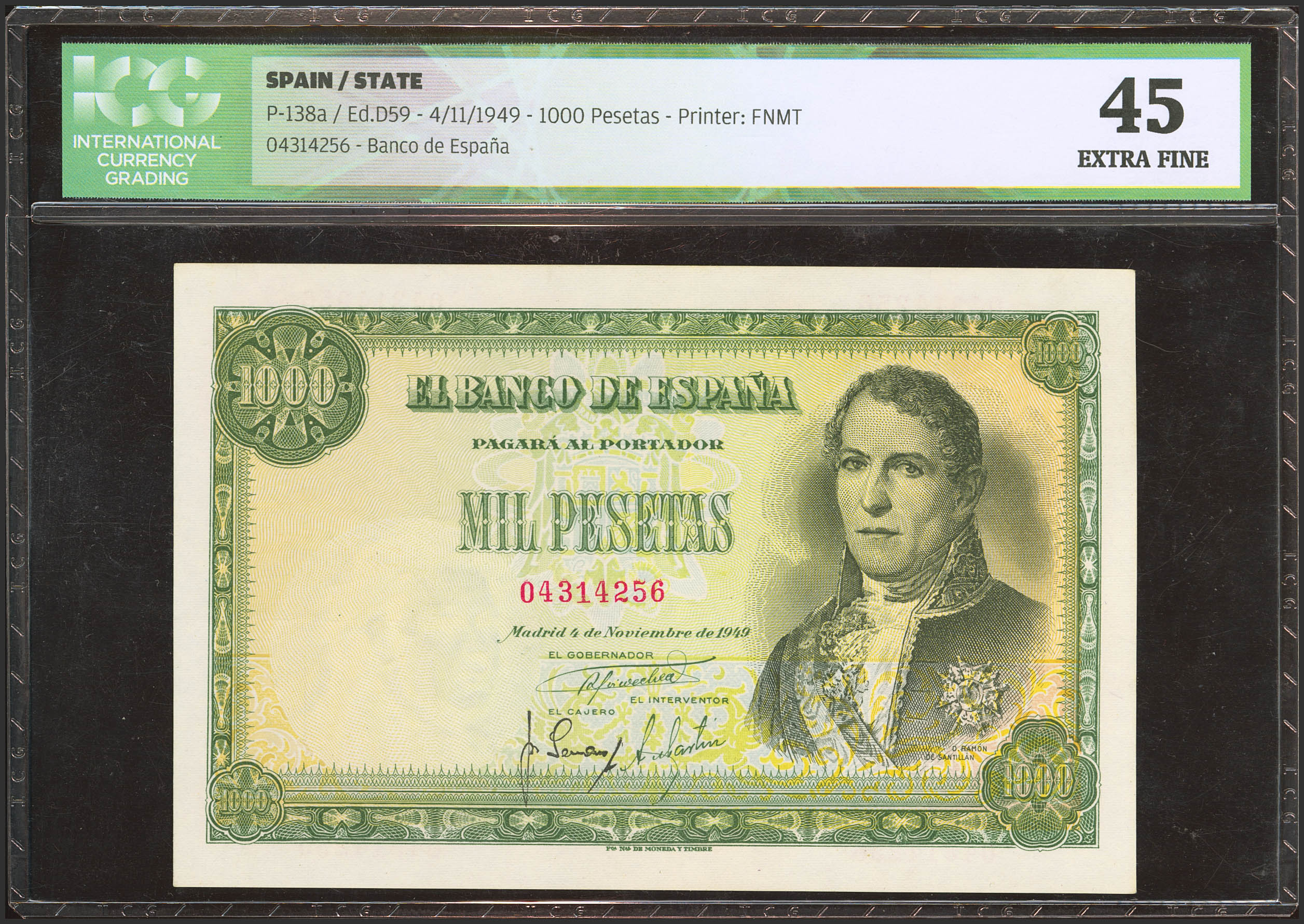 1000 Pesetas. 4 de Noviembre de 1949. Sin serie. (Edifil 2023: 458, Pick: 138a). EBC-. Encapsulado ICG45.