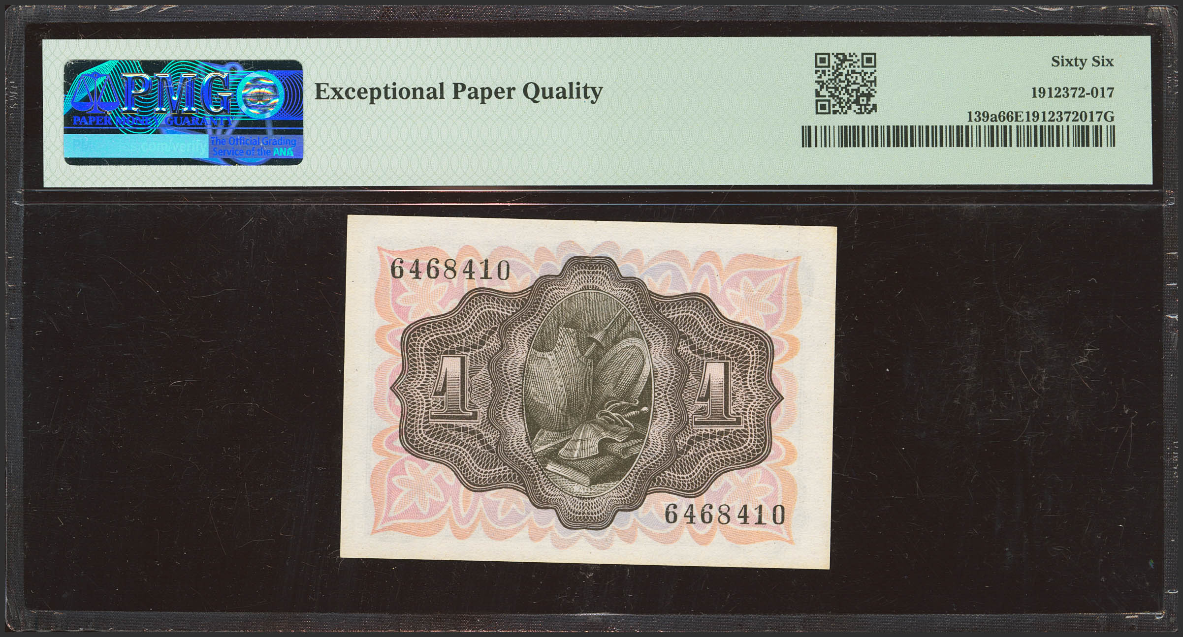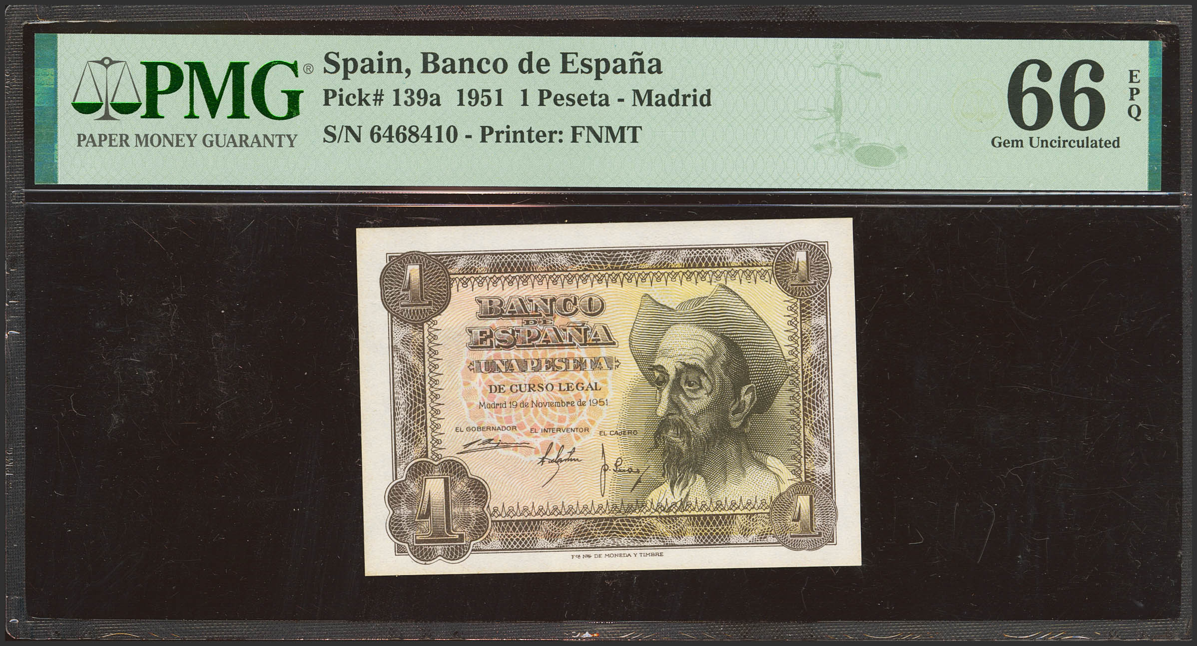 1 Peseta. 19 de Noviembre de 1951. Sin serie. (Edifil 2021: 461, Pick: 139a). Apresto original. SC. Encapsulado PMG66EPQ.