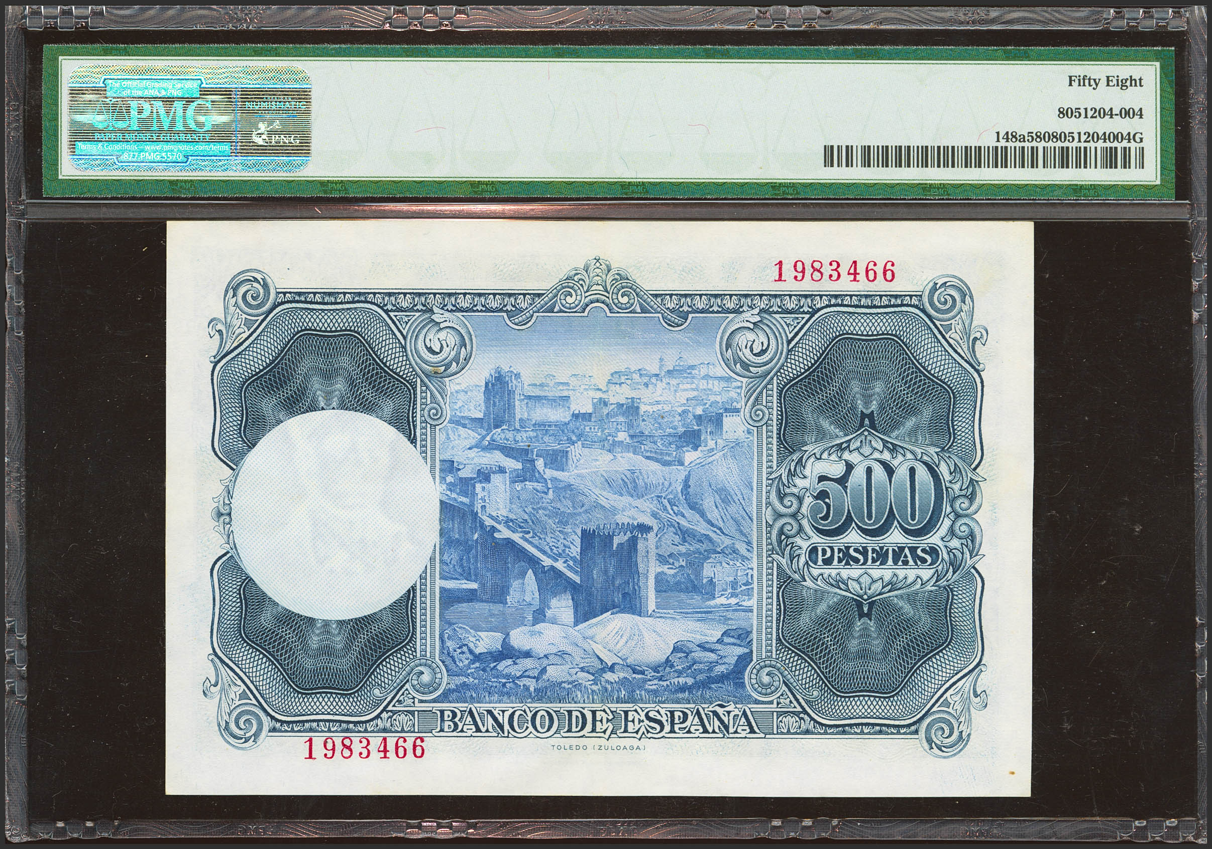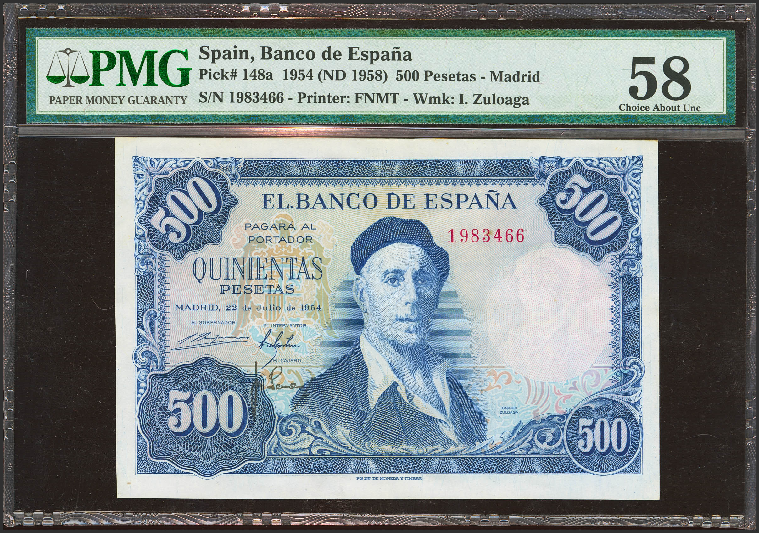 500 Pesetas. 22 de Julio de 1954. Sin serie. (Edifil 2023 468, Pick: 148a). EBC++. Encapsulado PMG58.