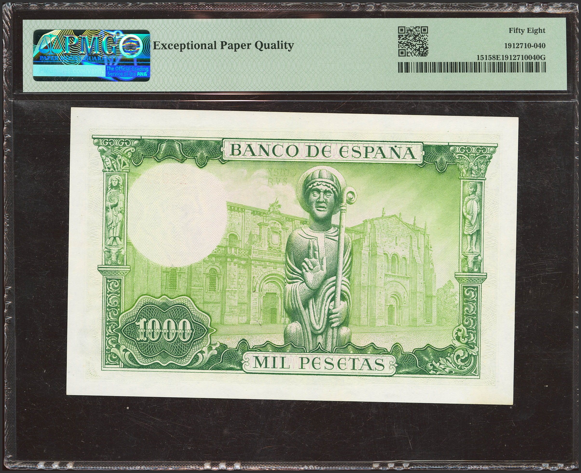 1000 Pesetas. 19 de Noviembre de 1965. Sin serie. (Edifil 2023: 471, Pick: 151). Apresto original. EBC+. Encapsulado PMG58EPQ.