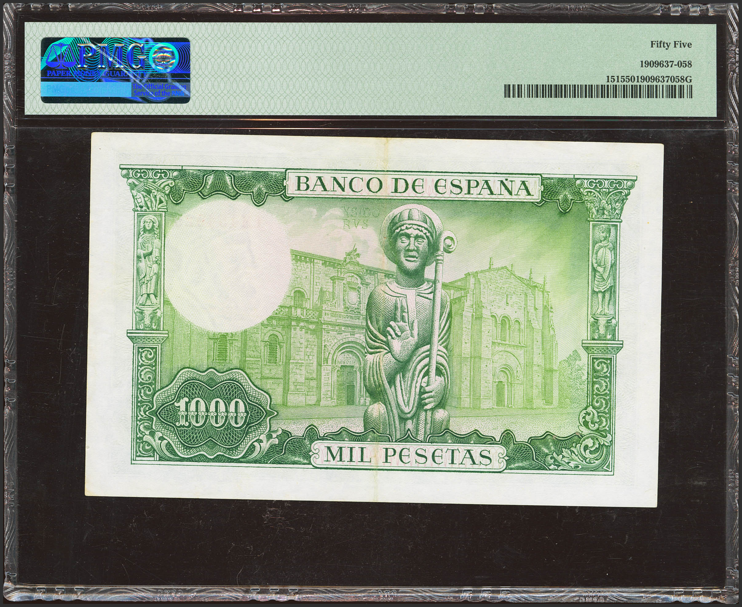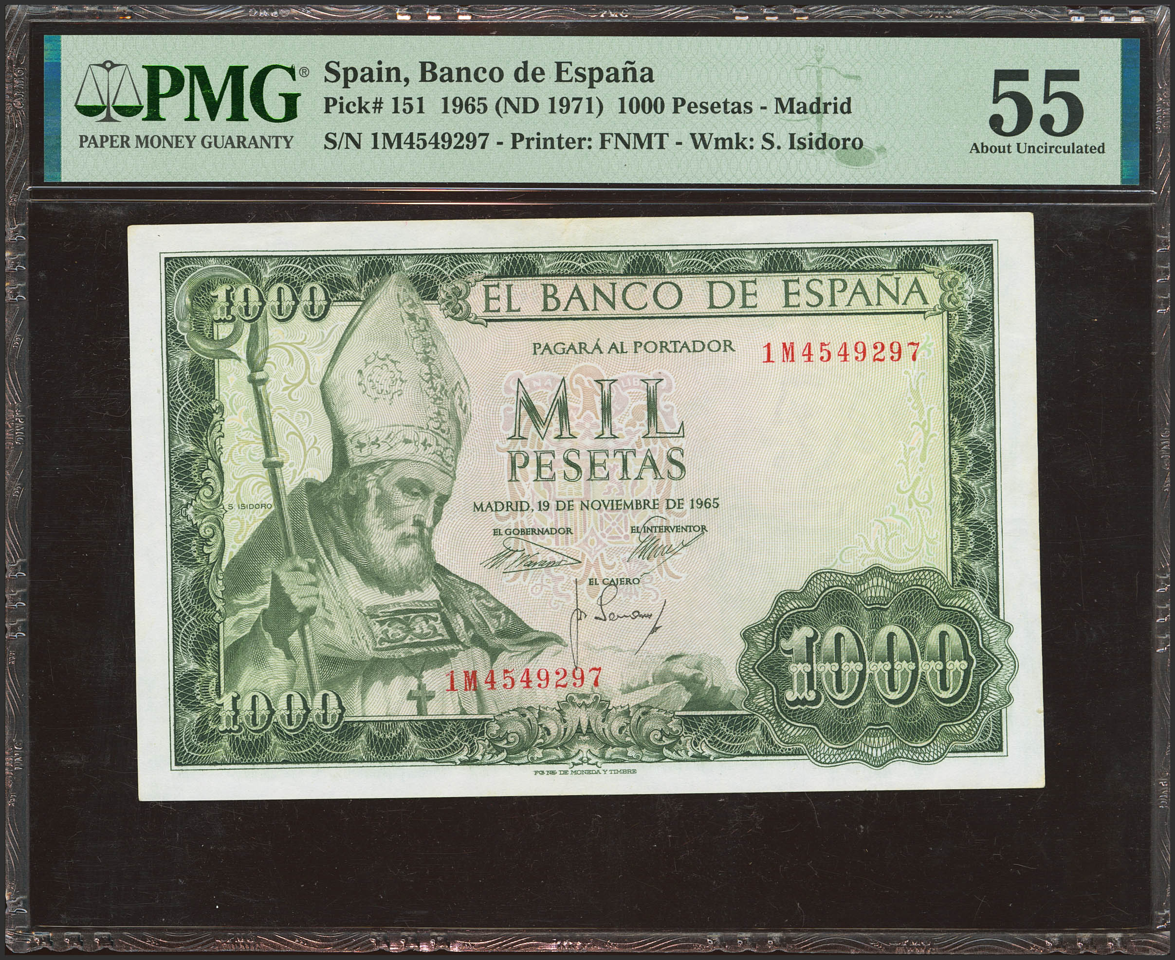 1000 Pesetas. 19 de Noviembre de 1965. Serie 1M, última serie emitida. (Edifil 2023: 471b, Pick: 151). EBC+. Encapsulado PMG55.