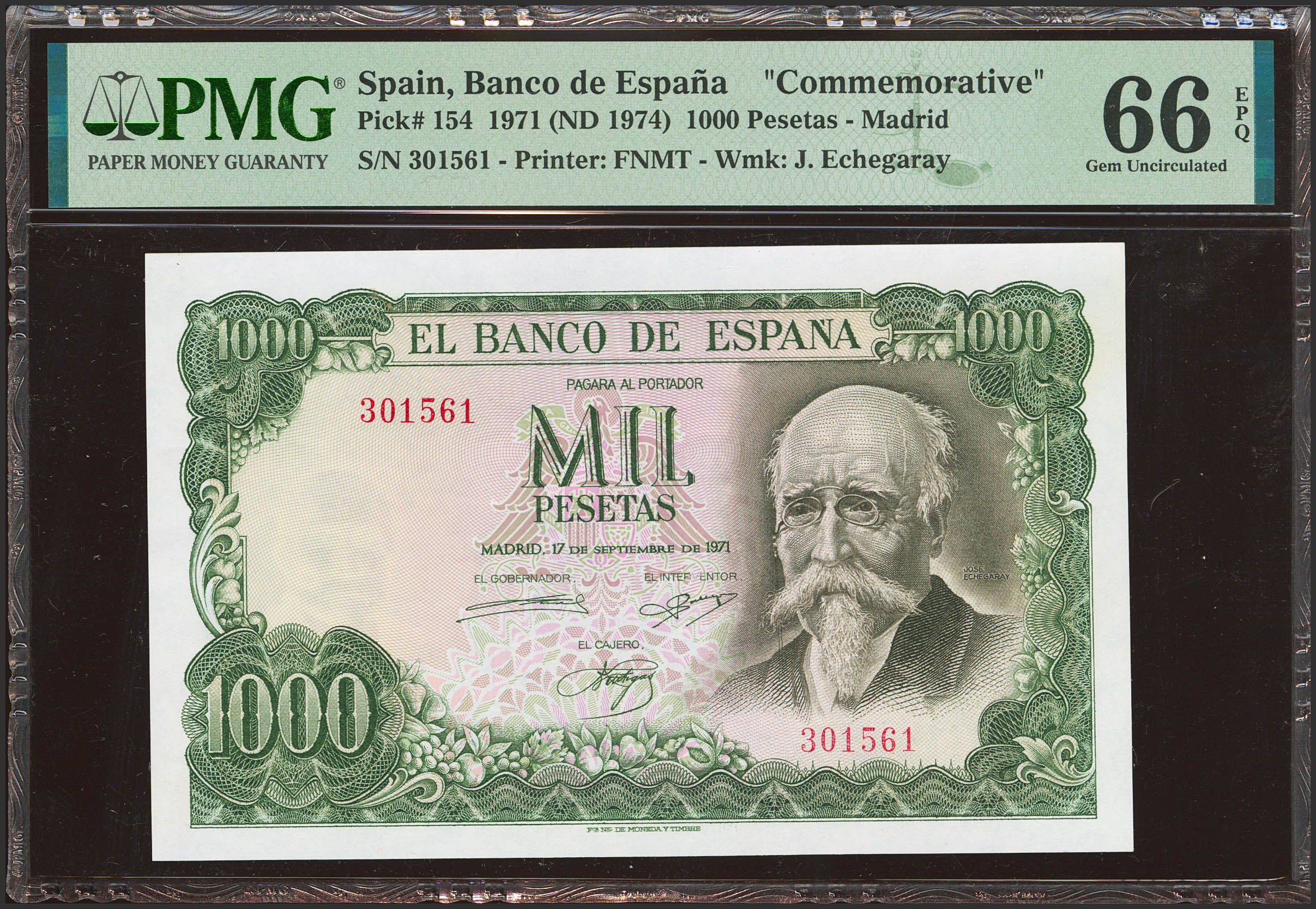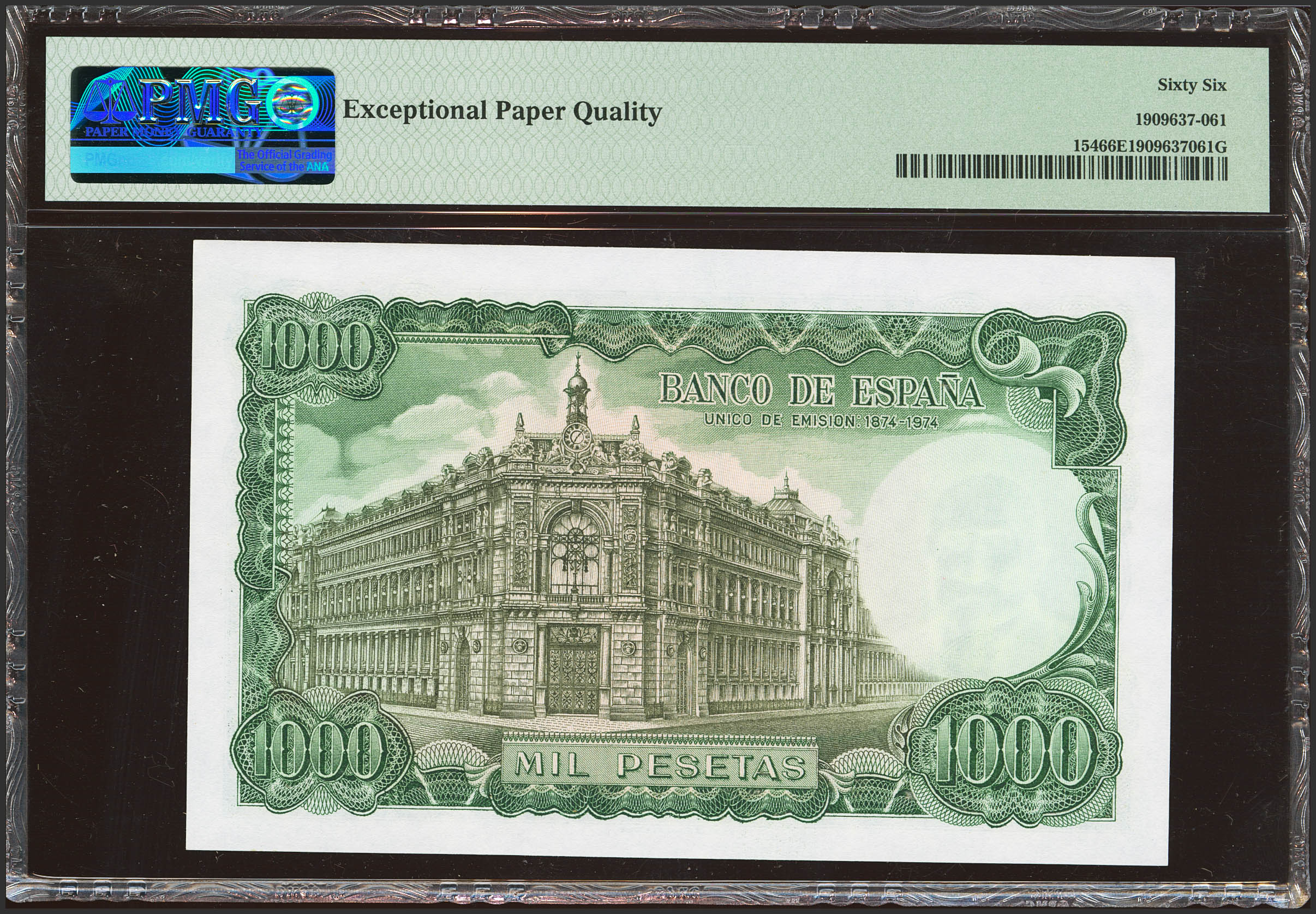 1000 Pesetas. 17 de Septiembre de 1971. Sin serie. (Edifil 2023: 474, Pick: 154). Raro en esta excepcional calidad, apresto original. SC. Encapsulado PMG66EPQ.