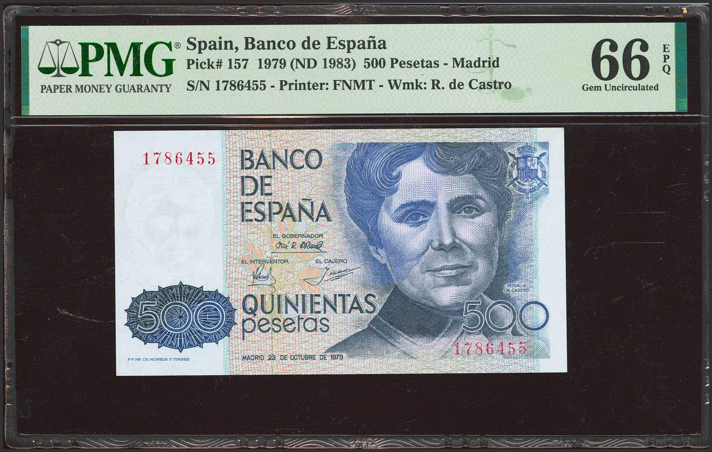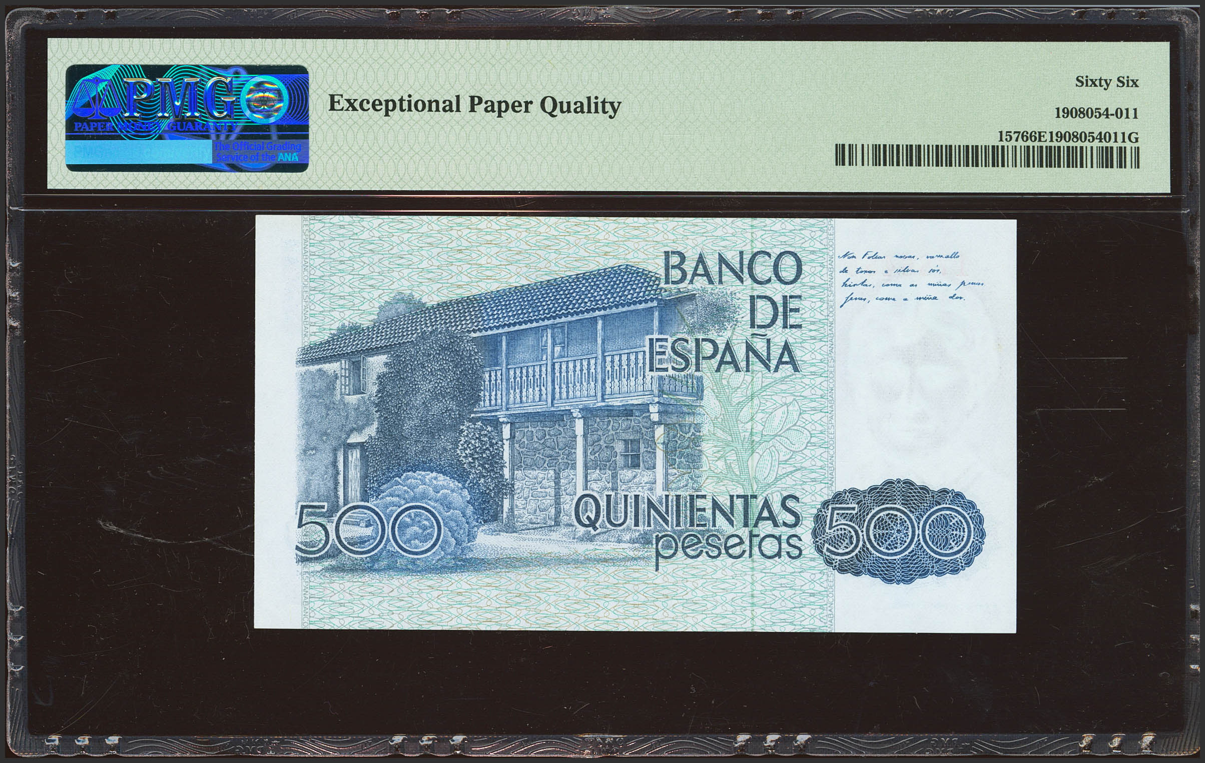 500 Pesetas. 23 de Octubre de 1979. Sin serie. (Edifil 2023: 476, Pick: 157). SC. Encapsulado PMG66EPQ.