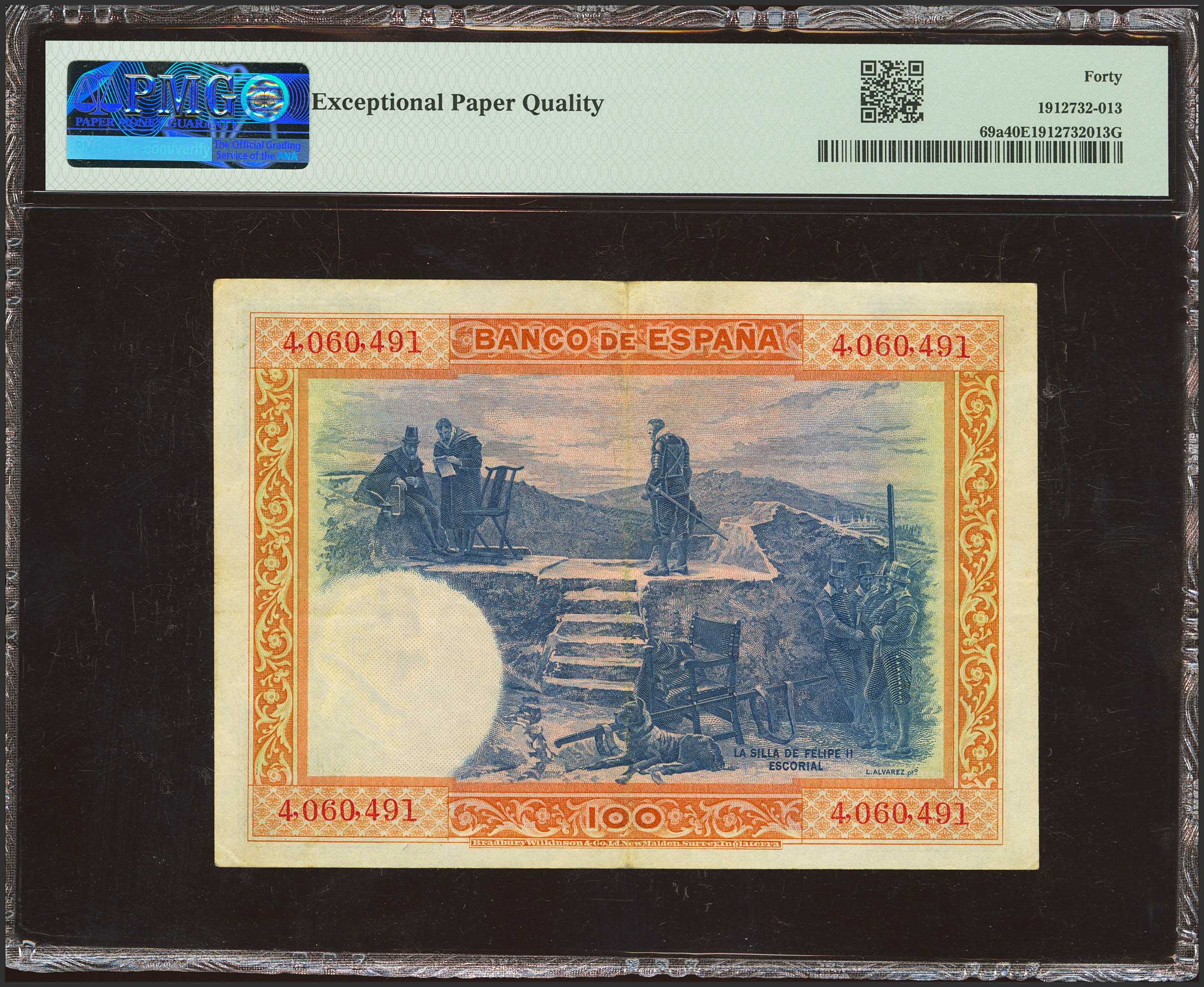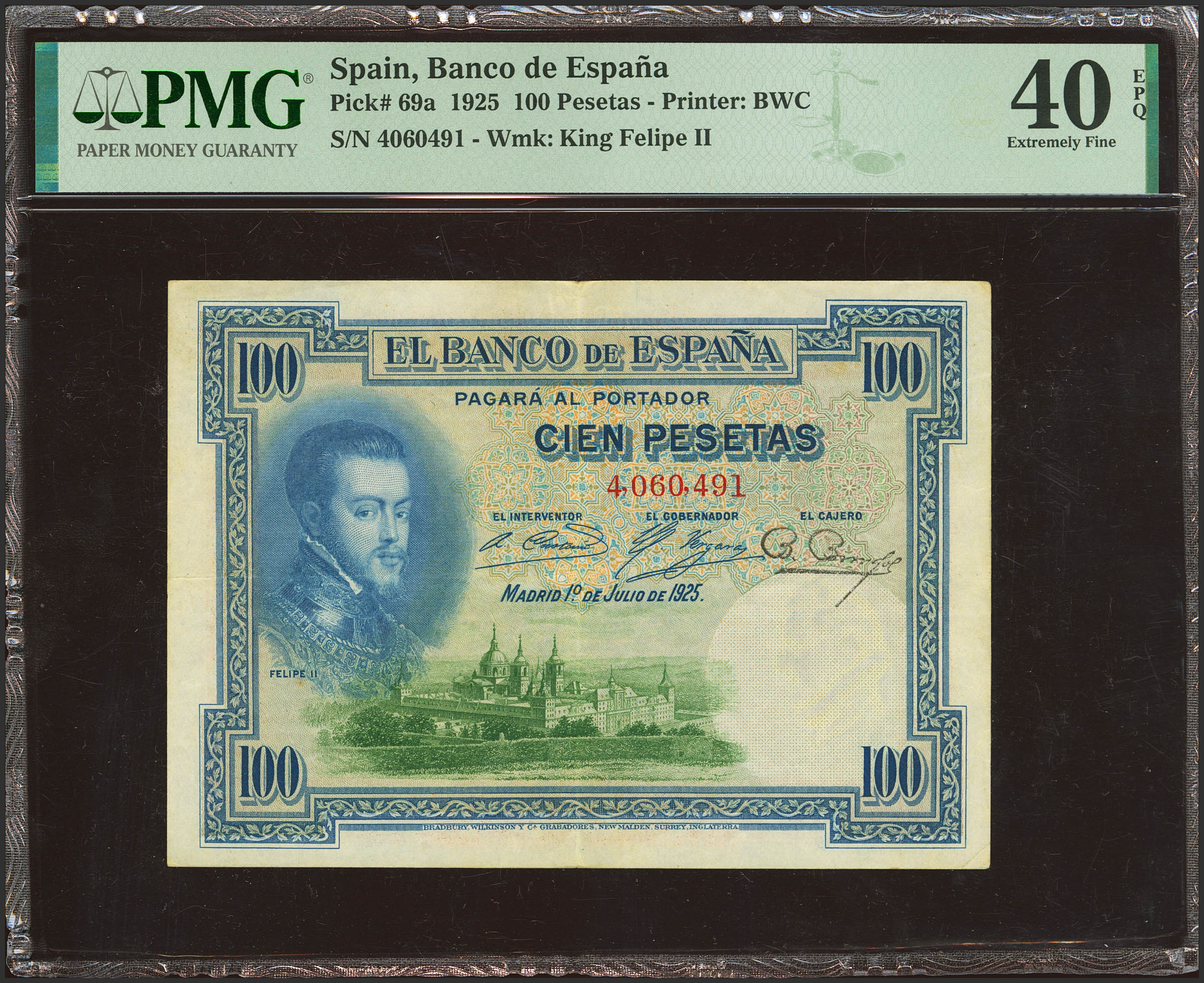 100 Pesetas. 1 de Julio de 1925. Sin serie. (Edifil 2021: 323, Pick: 69a). Apresto original. EBC-. Encapsulado PMG40EPQ.