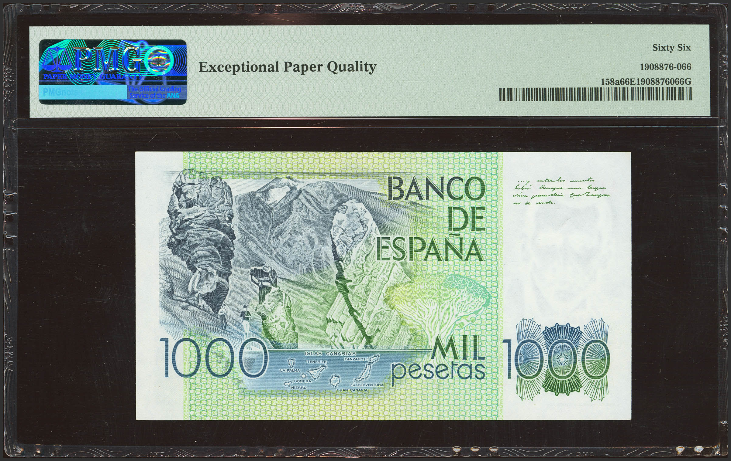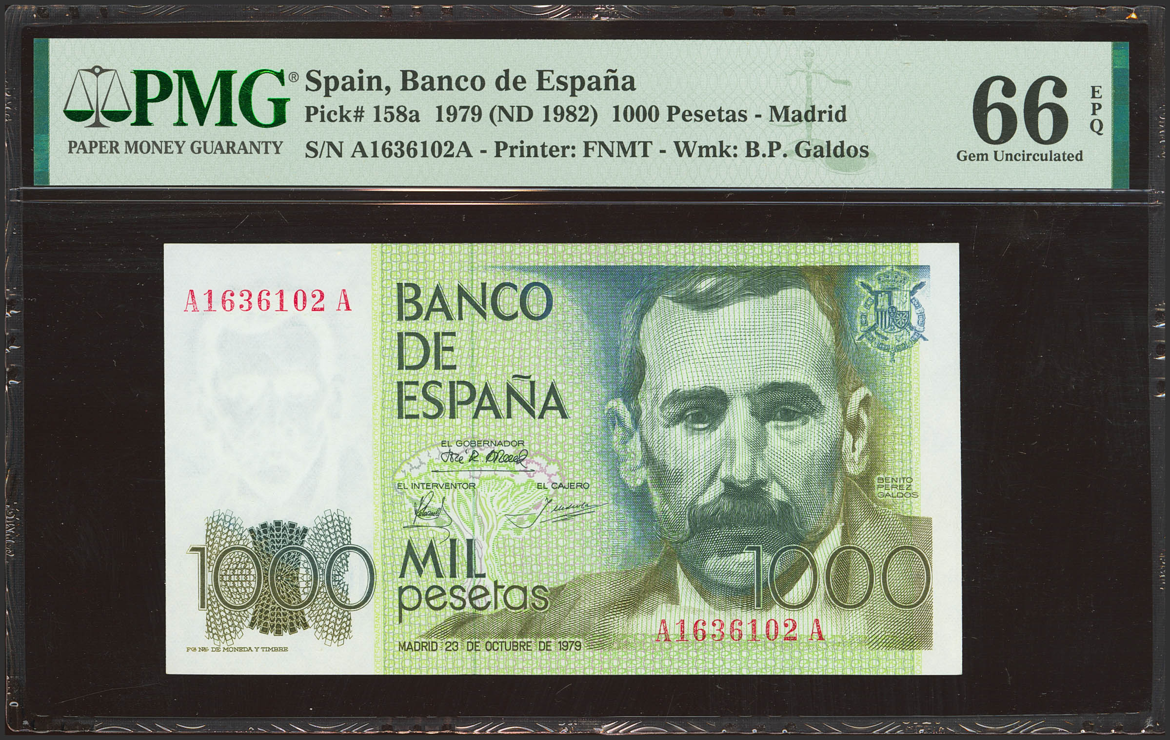 1000 Pesetas. 23 de Octubre de 1979. Serie A-A. (Edifil 2023: 477a, Pick: 158a). SC. Encapsulado PMG66EPQ.