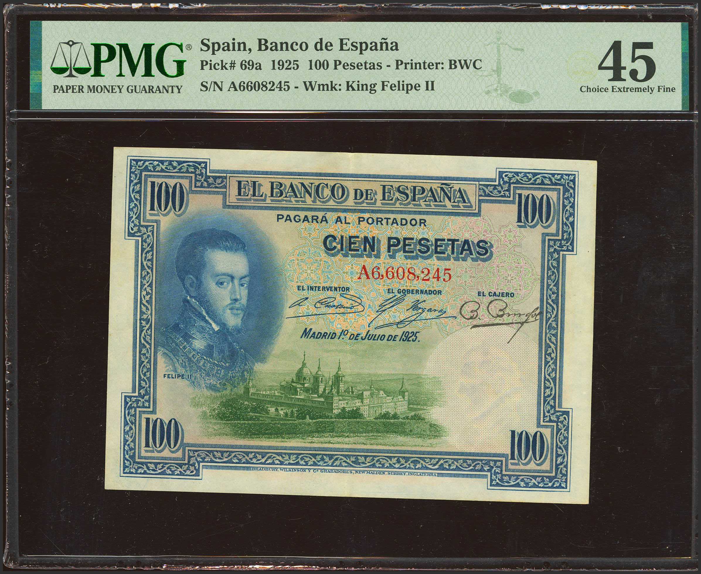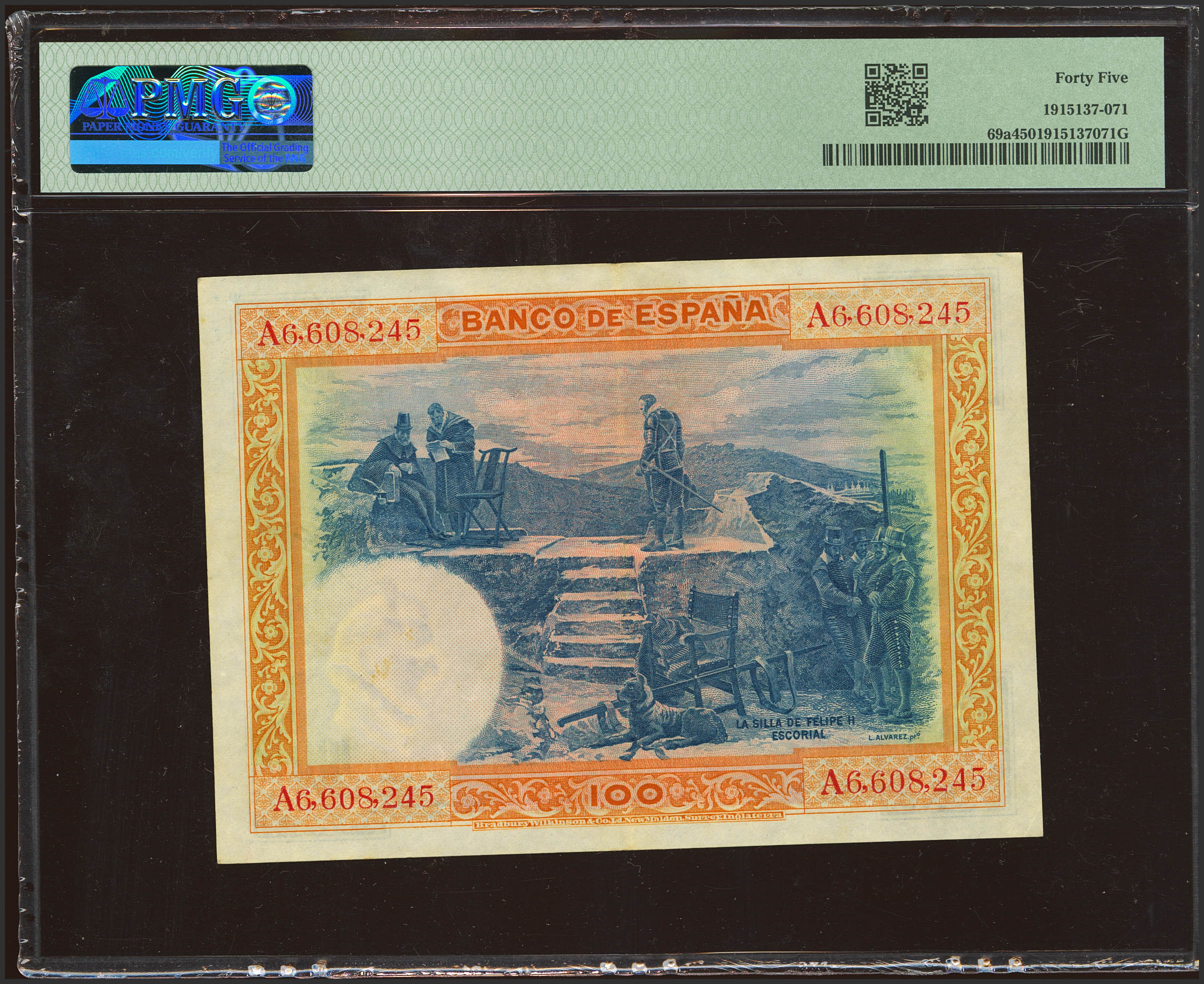 100 Pesetas. 1 de Julio de 1925. Serie A. (Edifil 2023: 323a, Pick: 69a). EBC-. Encapsulado PMG45.