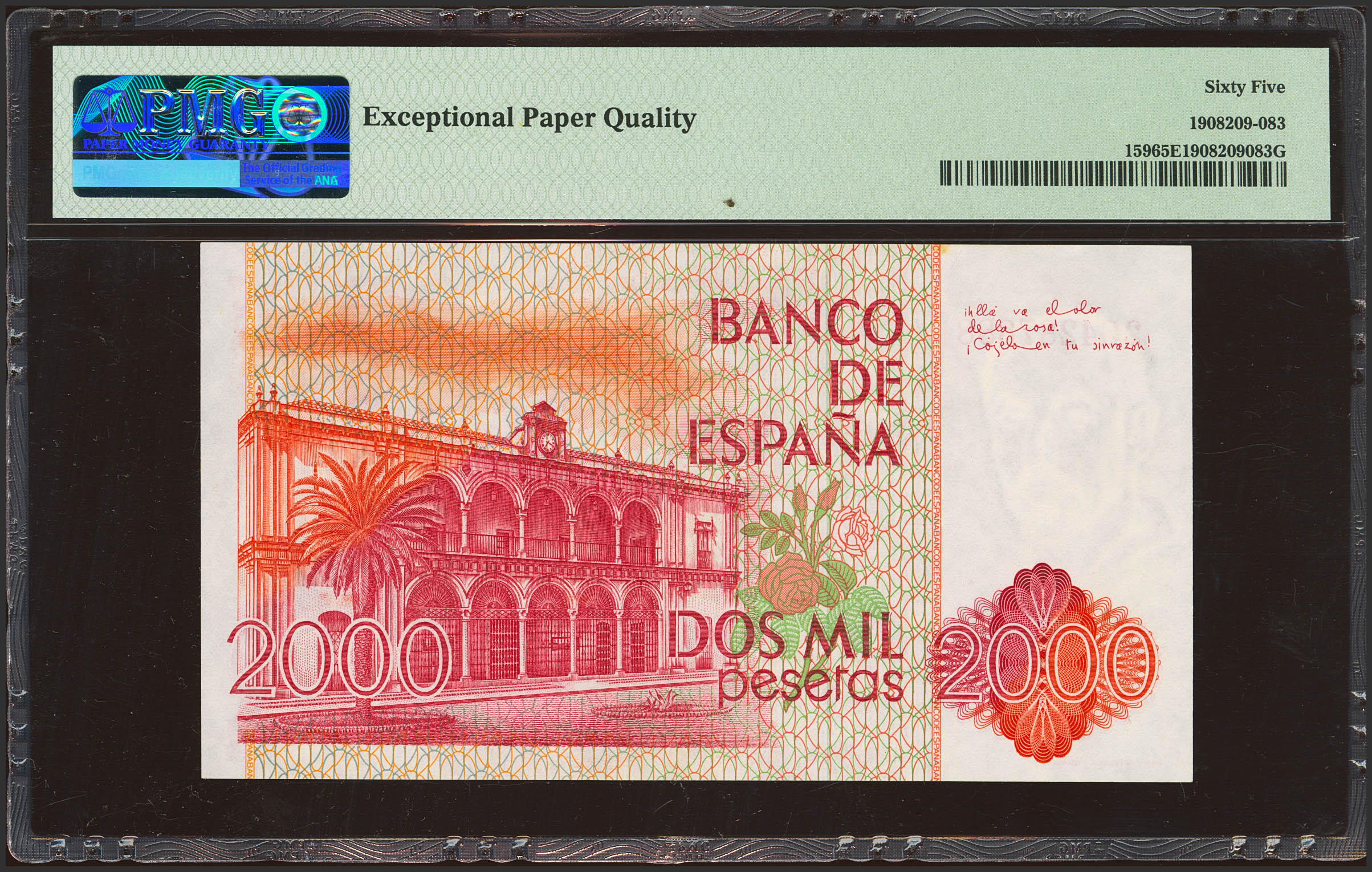 2000 Pesetas. 22 de Julio de 1980. Serie 2C. (Edifil 2023: 479a, Pick: 159). SC. Encapsulado PMG65EPQ.