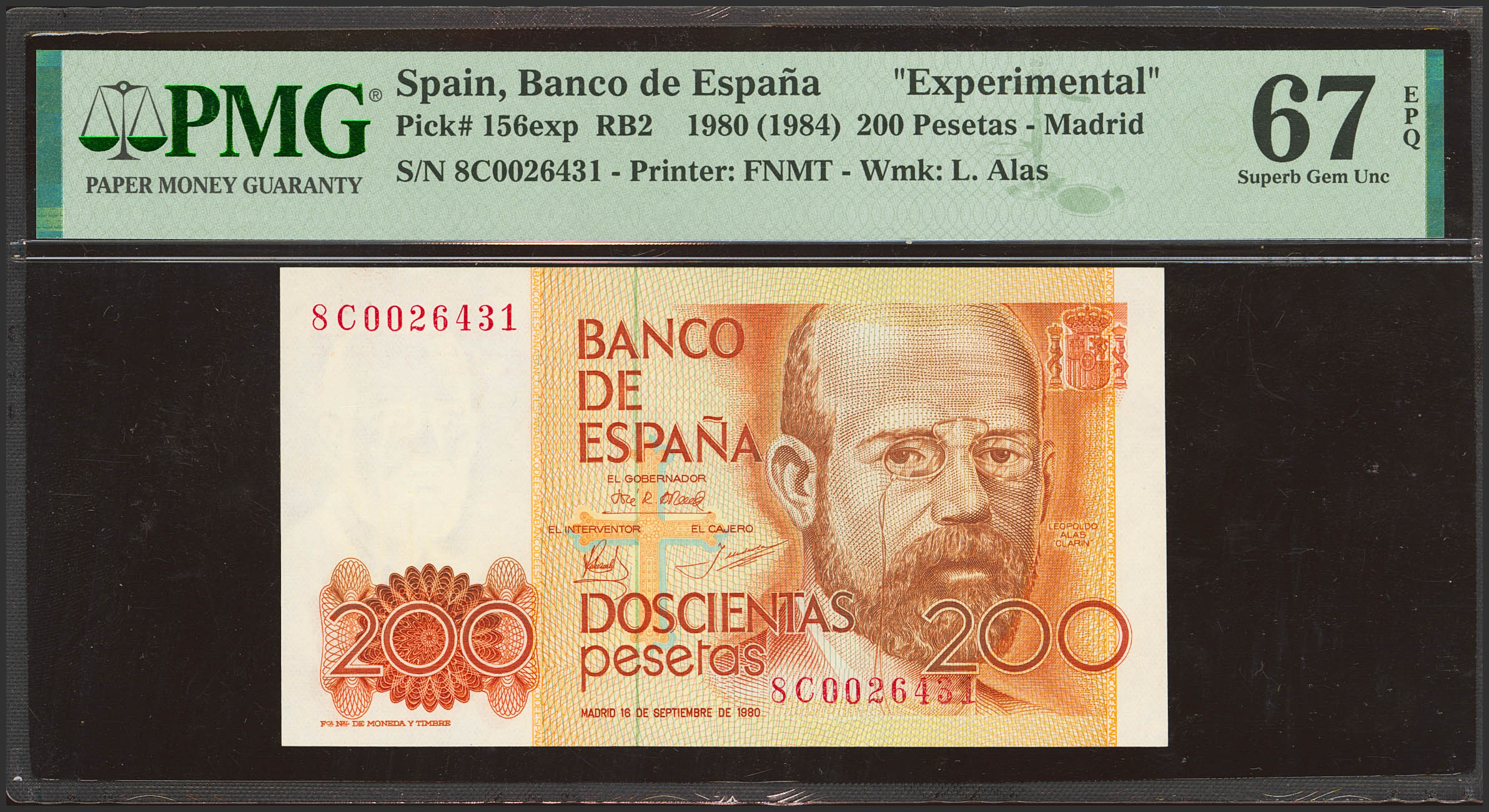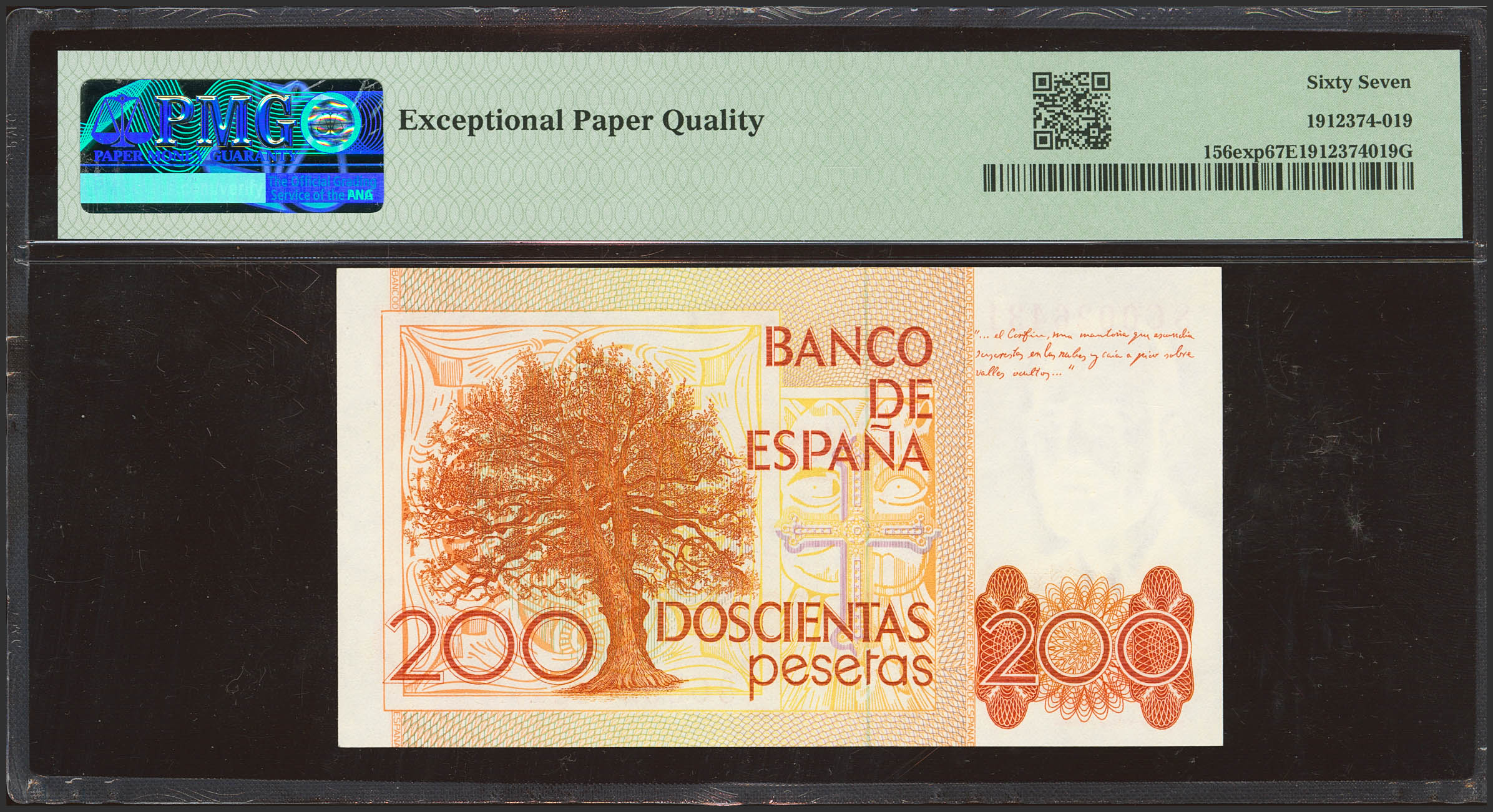200 Pesetas. 16 de Septiembre de 1980. Serie especial 8C. (Edifil 2023: 480f, Pick: 156exp). Raro, especialmente en esta excepcional calidad. SC. Encapsulado PMG67EPQ.