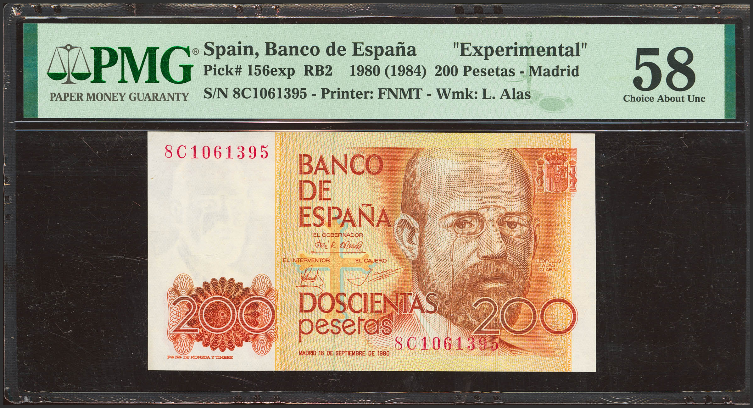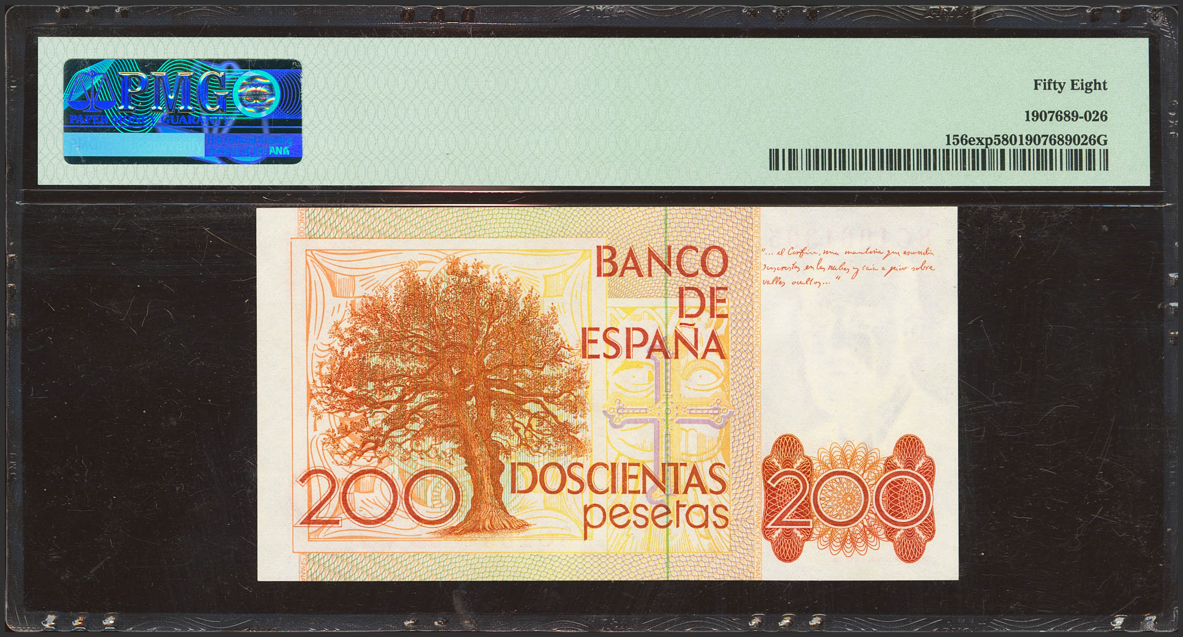 200 Pesetas. 16 de Septiembre de 1980. Serie especial 8C. (Edifil 2023: 480f, Pick: 156exp). EBC+++. Encapsulado PMG58.