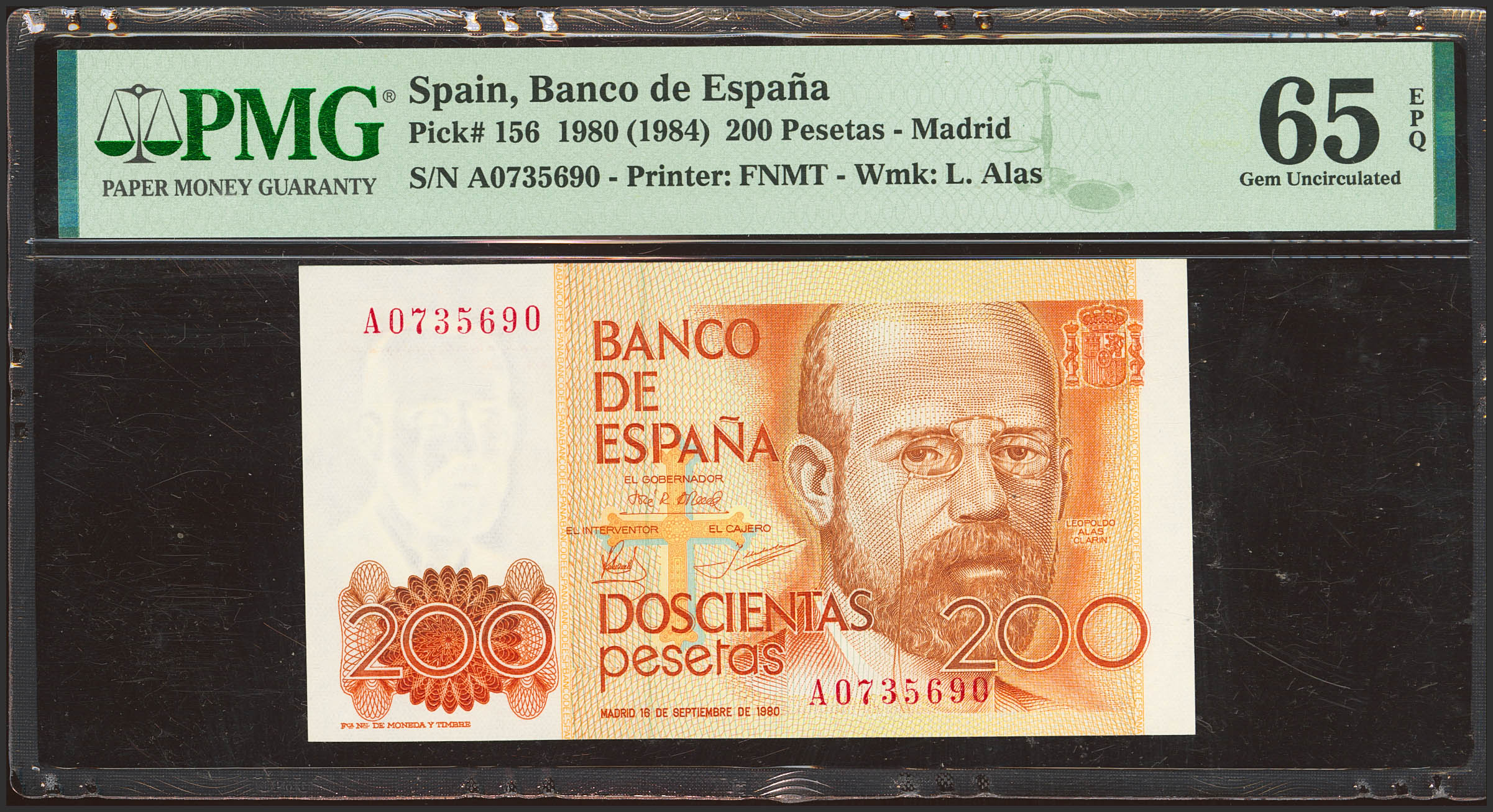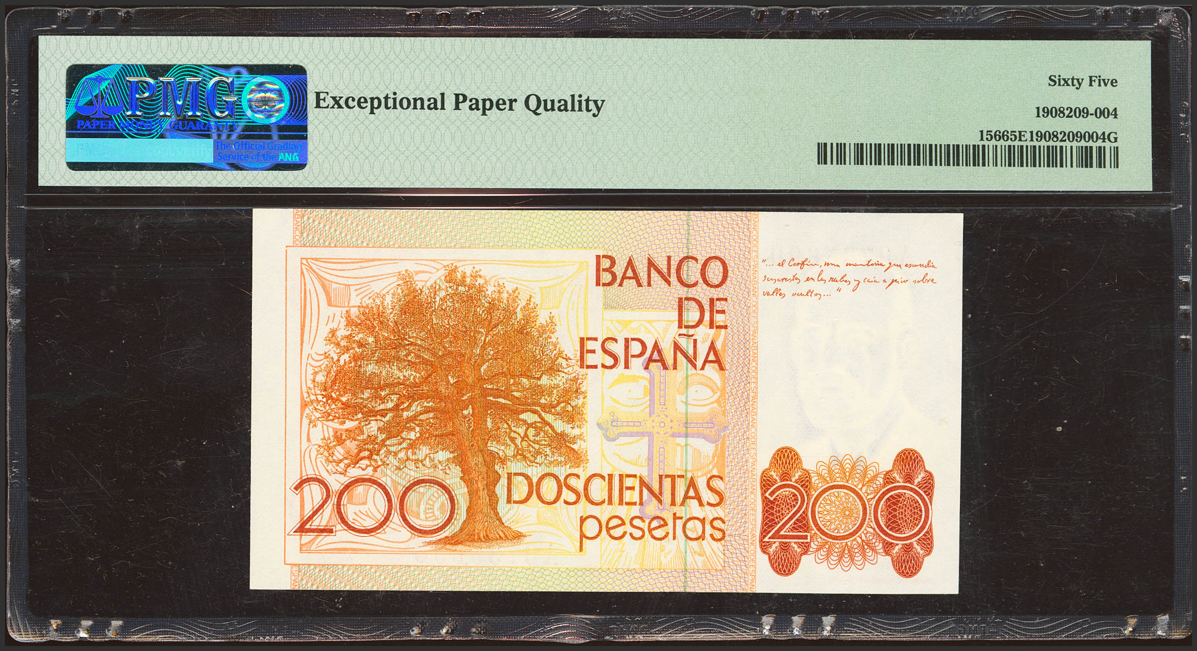 200 Pesetas. 16 de Septiembre de 1980. Serie A. (Edifil 2023: 480a, Pick: 156). SC. Encapsulado PMG65EPQ.