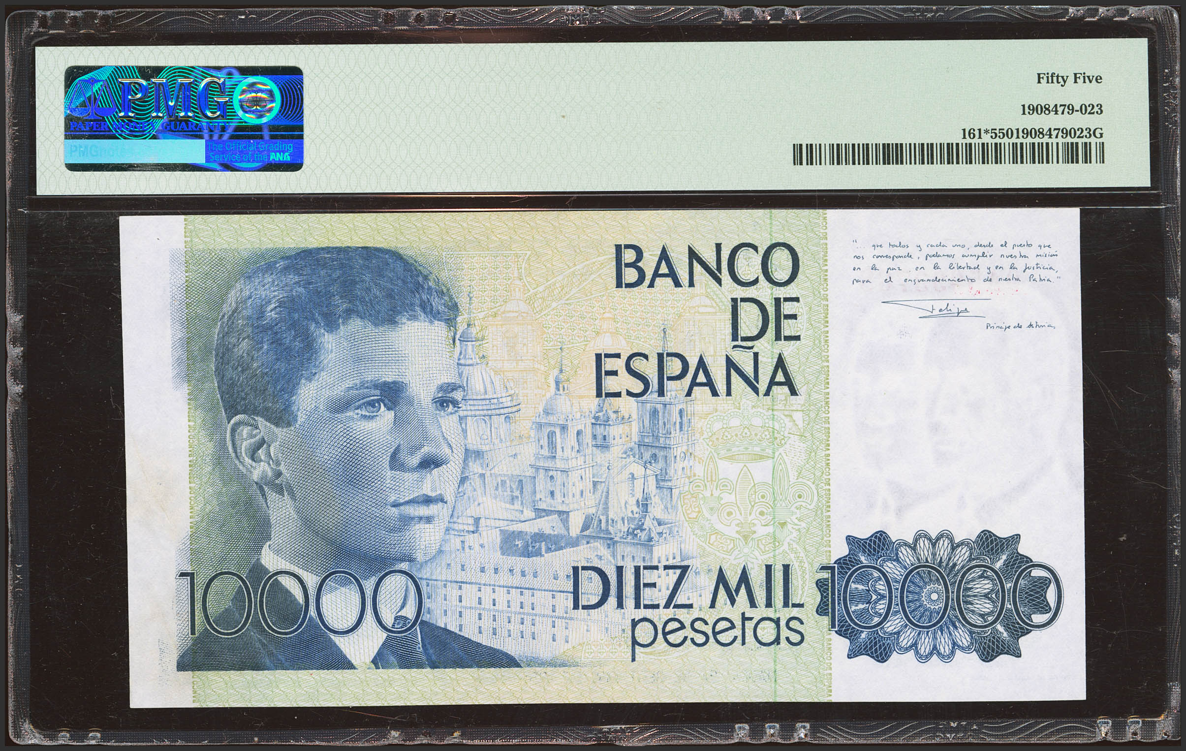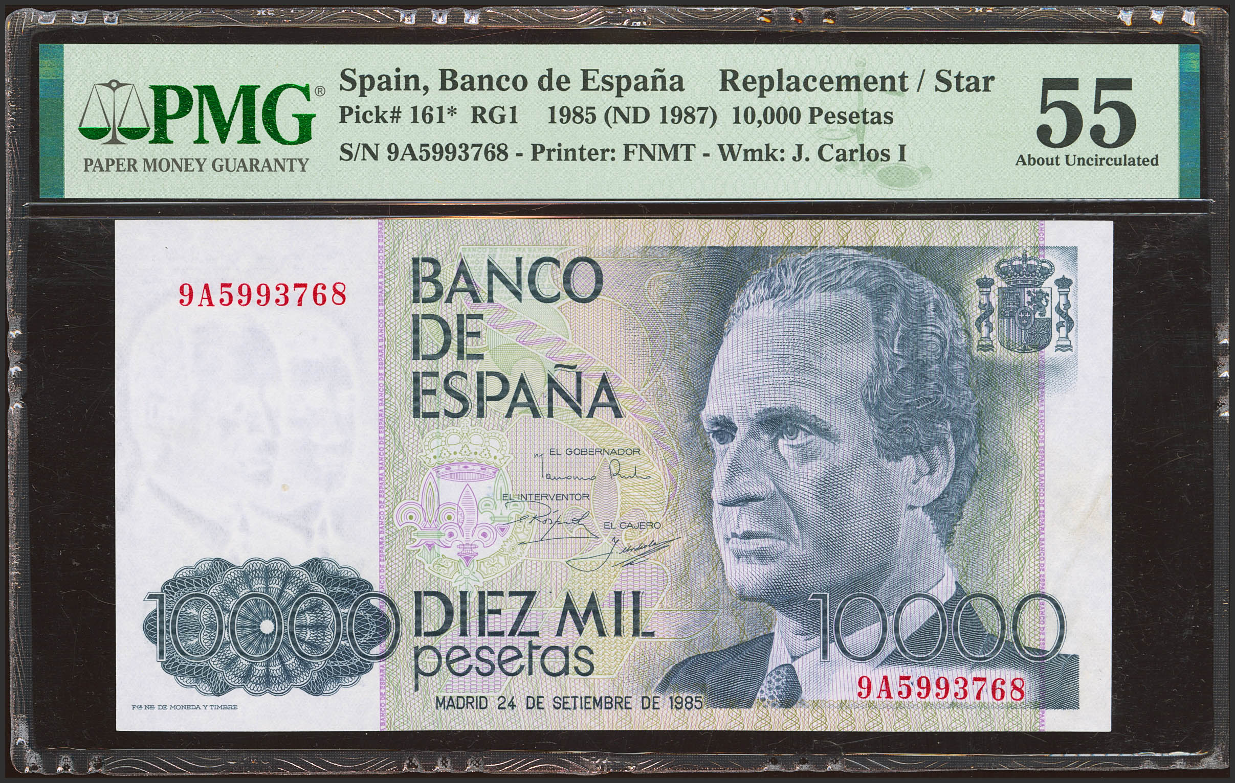 10000 Pesetas. 24 de Septiembre de 1985. Serie especial 9A. (Edifil 2023: 481b, Pick: 161*). EBC+. Encapsulado PMG55.