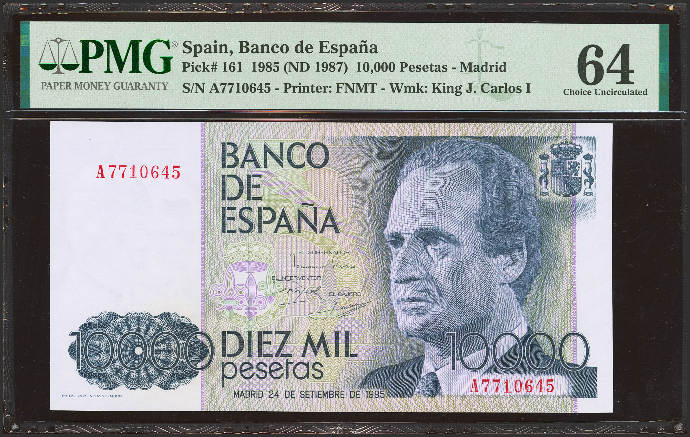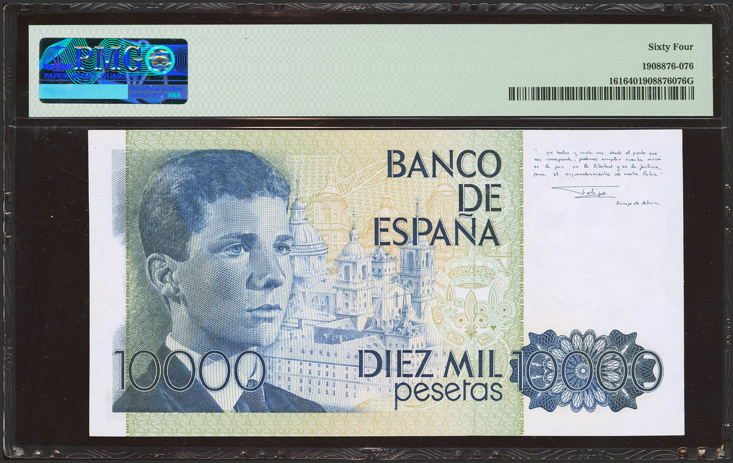 10000 Pesetas. 24 de Octubre de 1985. Serie A. (Edifil 2023: 481a, Pick: 161). Encapsulado PMG64.
