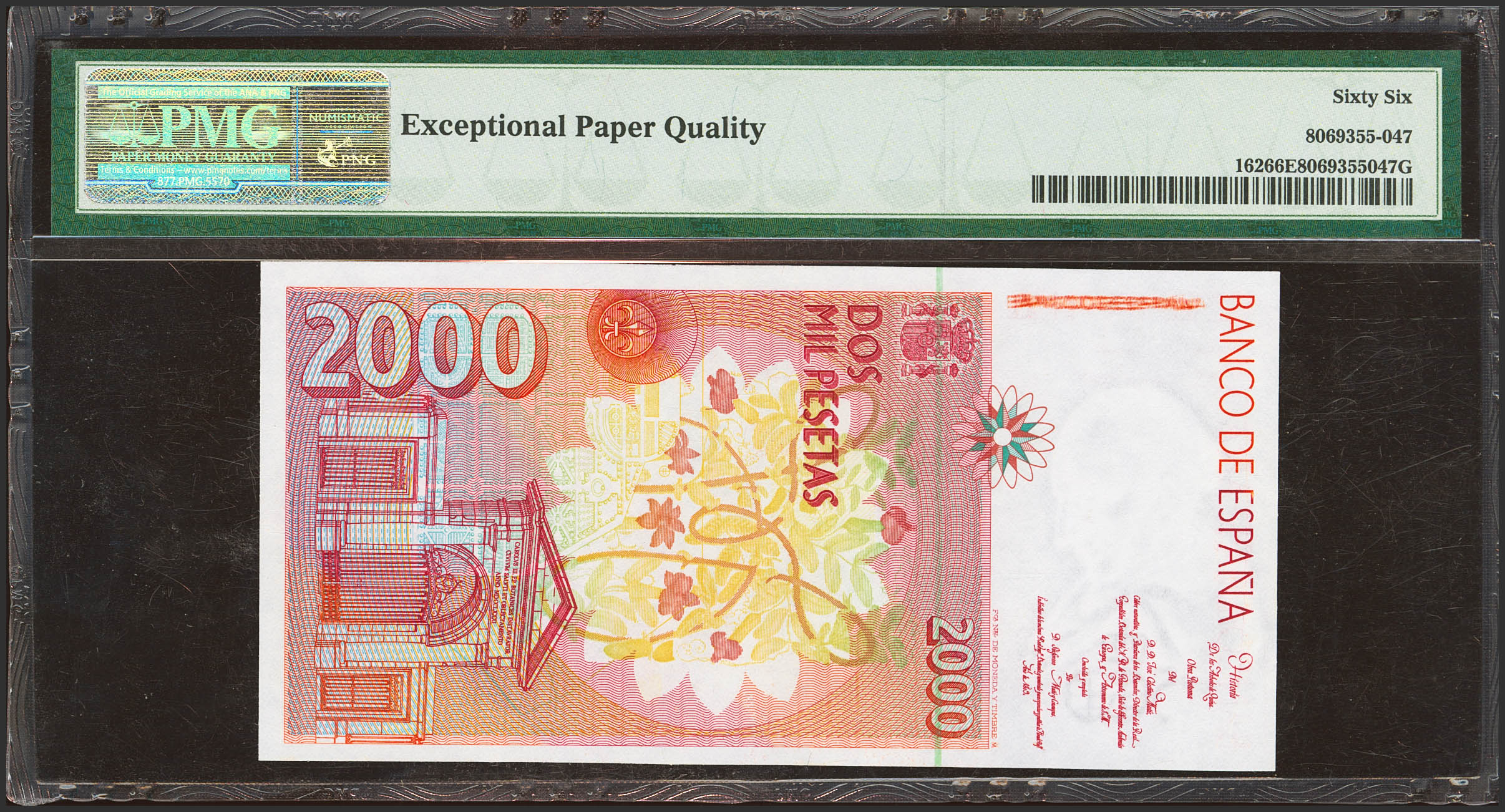 2000 Pesetas. 24 de Abril de 1992. Sin serie y numeración capicúa. (Edifil 2023: 482, Pick: 162). SC. Encapsulado PMG66EPQ.