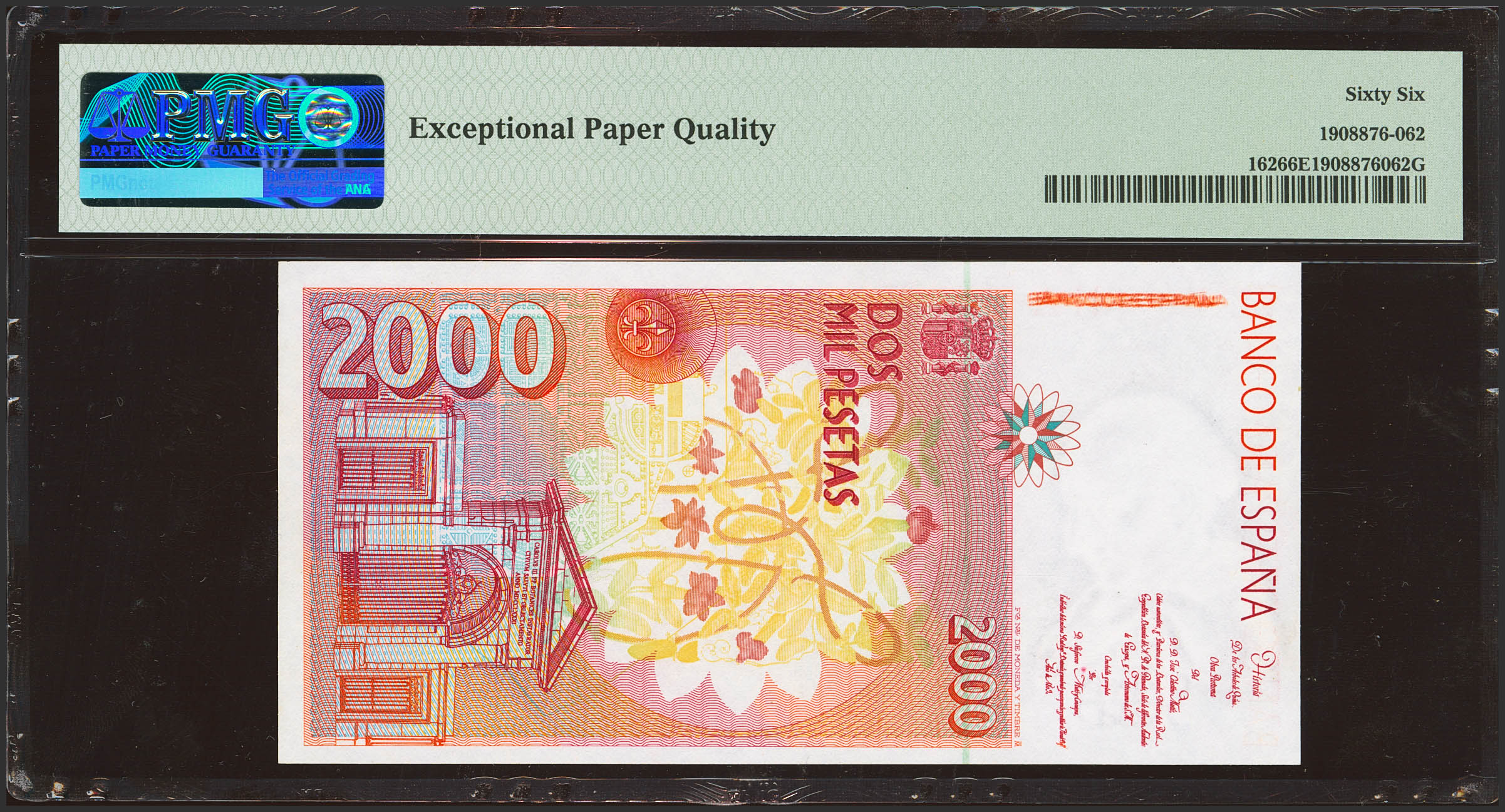 2000 Pesetas. 24 de Abril de 1992. Sin serie. (Edifil 2023: 482, Pick: 162). SC. Encapsulado PMG66EPQ.
