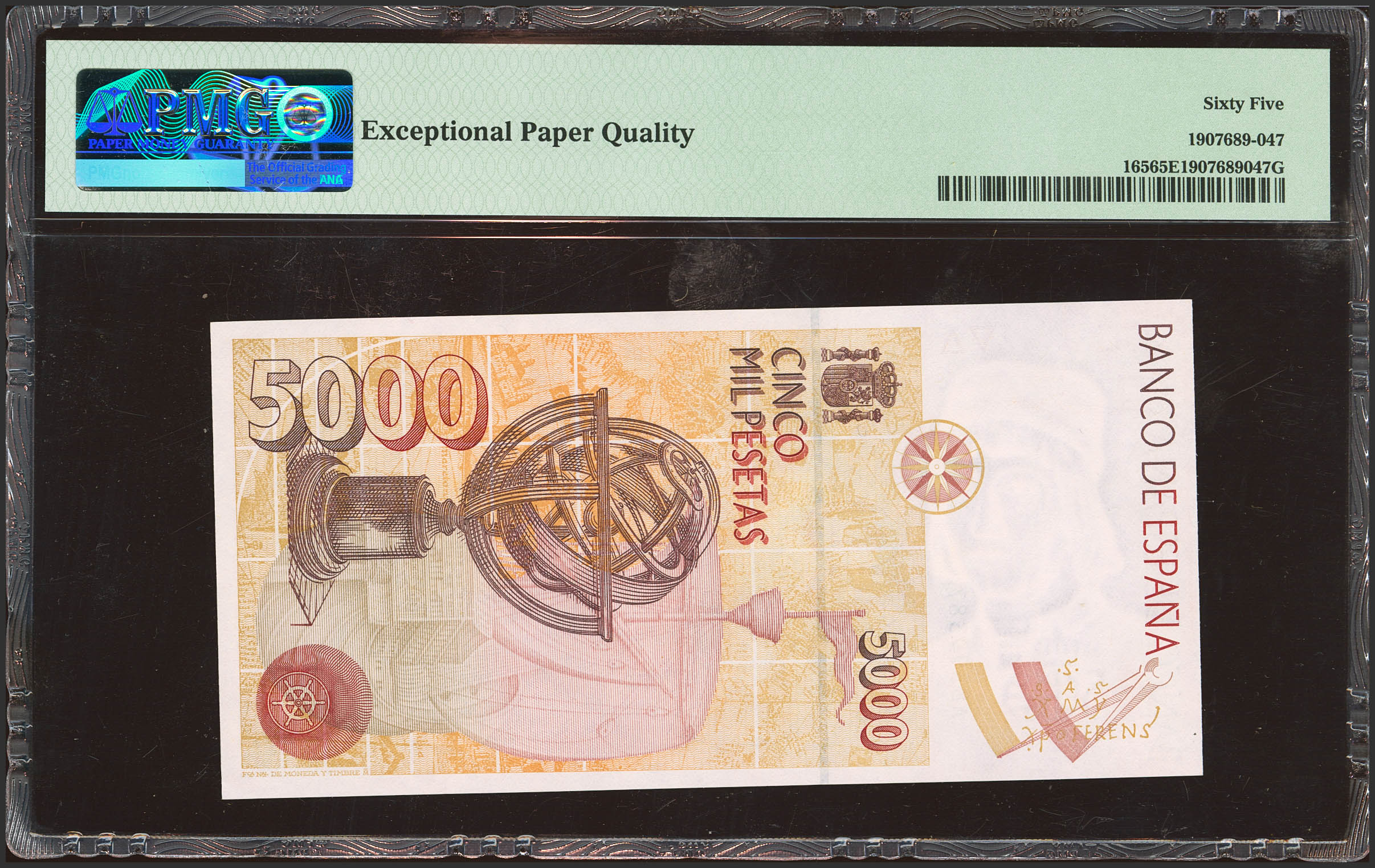 5000 Pesetas. 12 de Octubre de 1992. Serie A. (Edifil 2023: 484a, Pick: 165). Encapsulado PMG65EPQ.