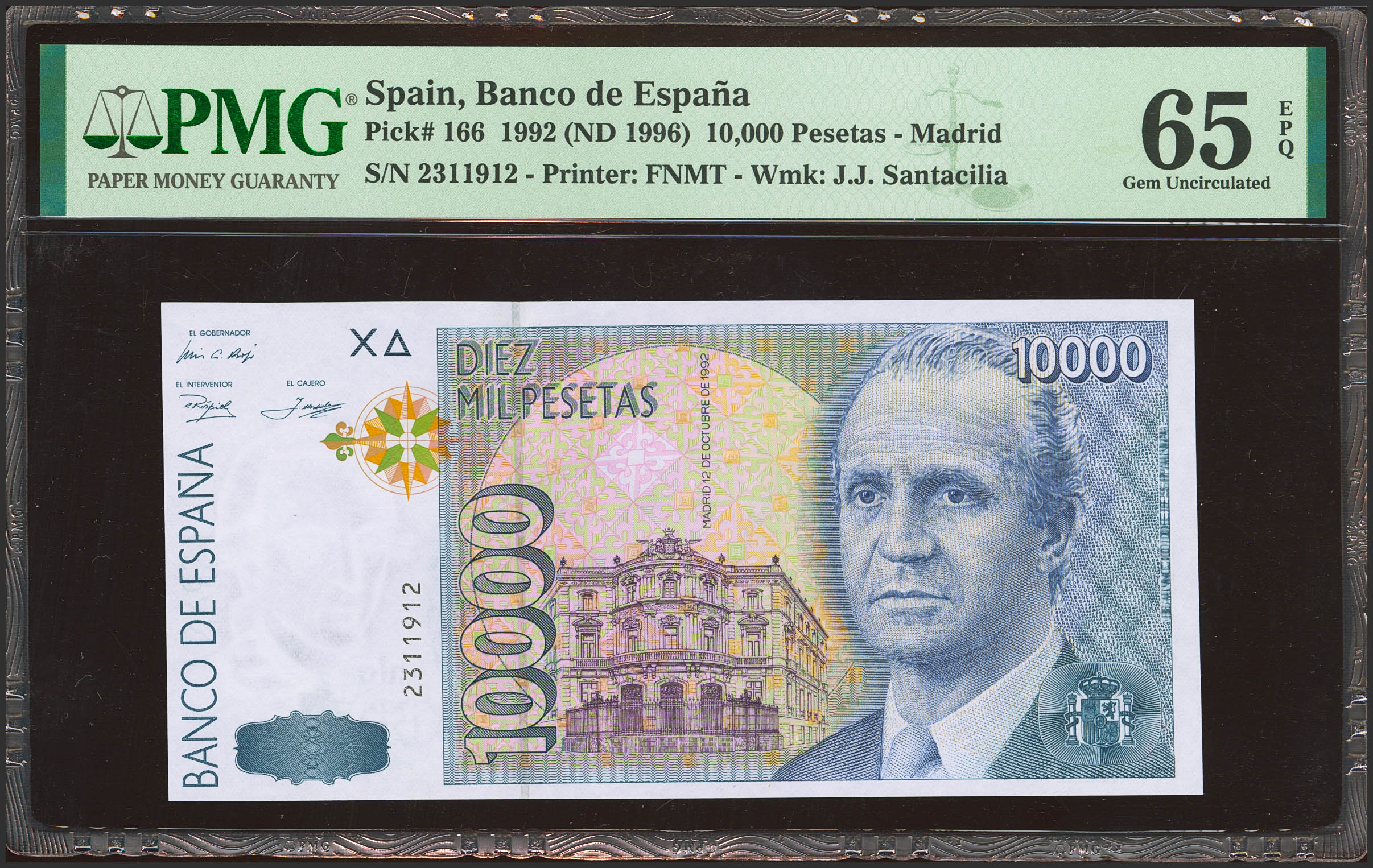 10000 Pesetas. 12 de Octubre de 1992. Sin serie. (Edifil 2023: 485, Pick: 166). SC. Encapsulado PMG65EPQ.