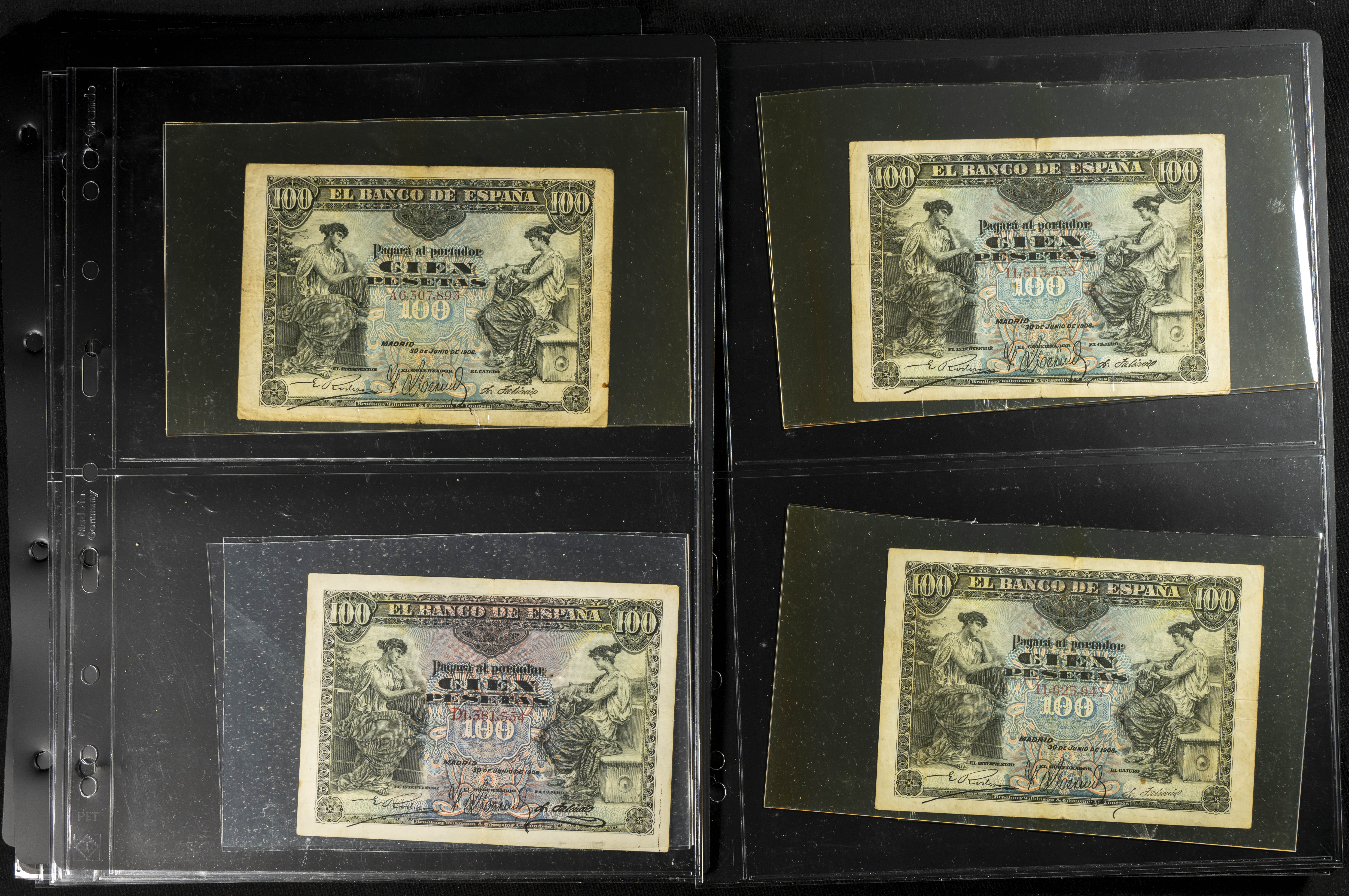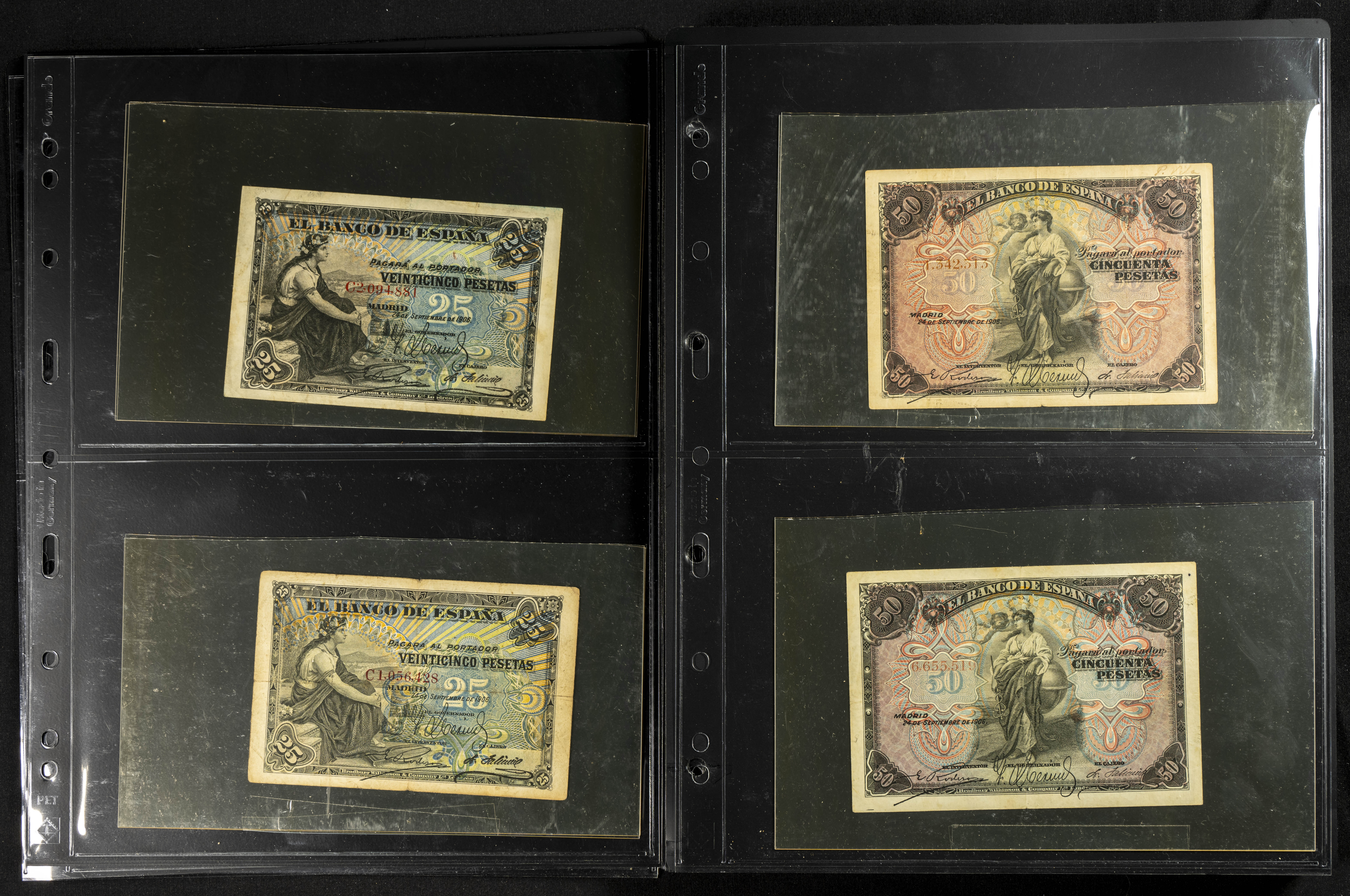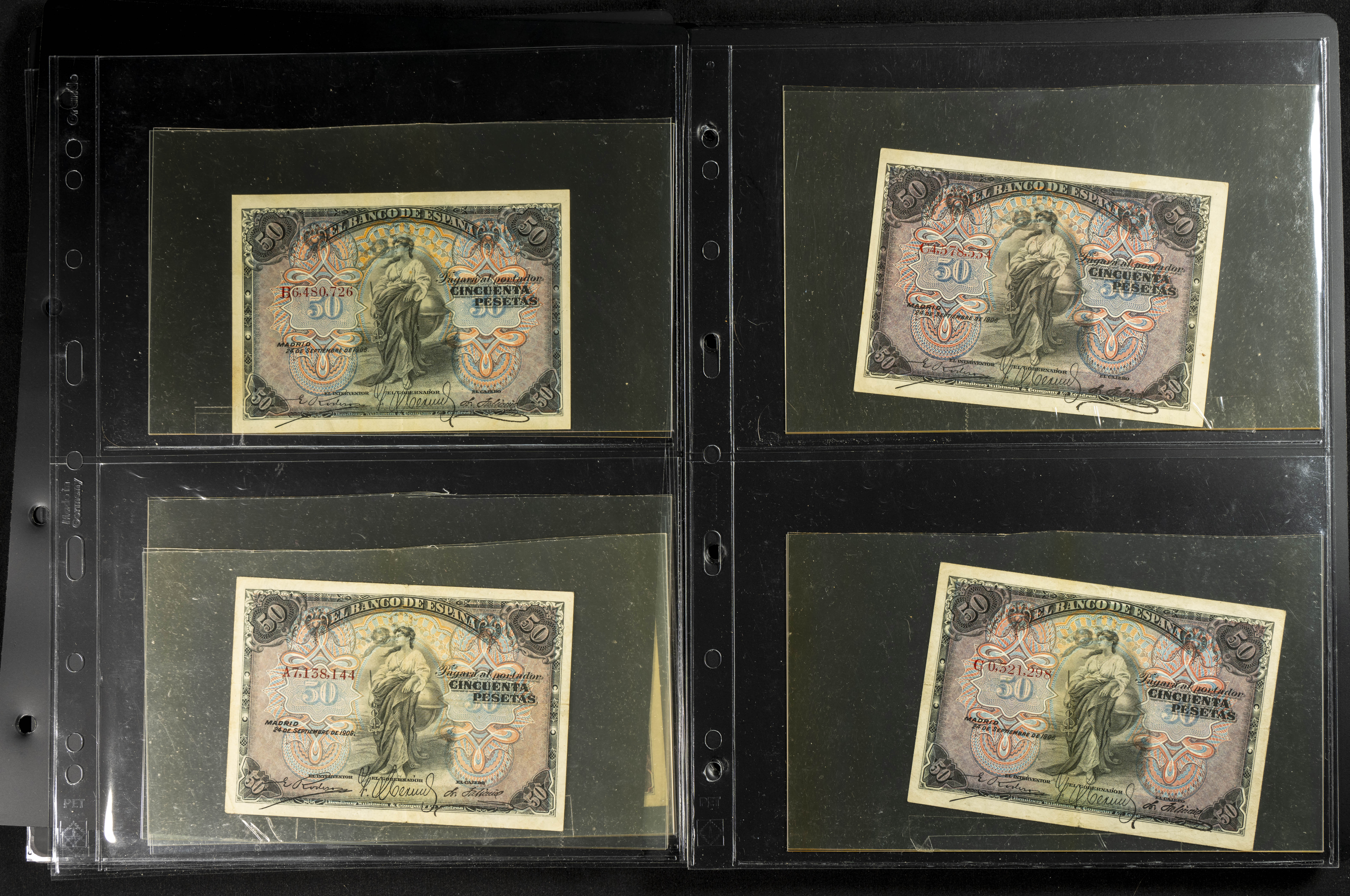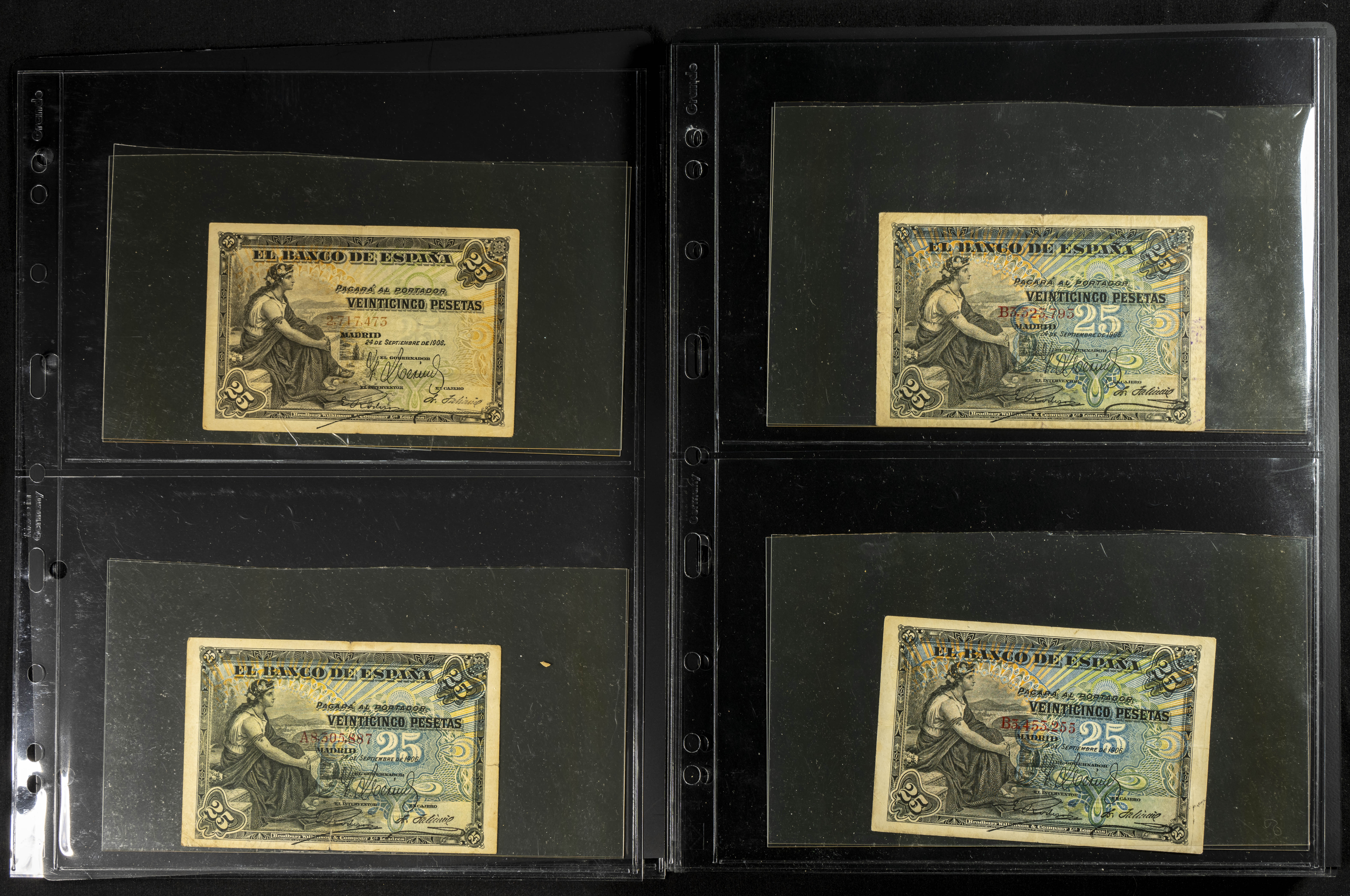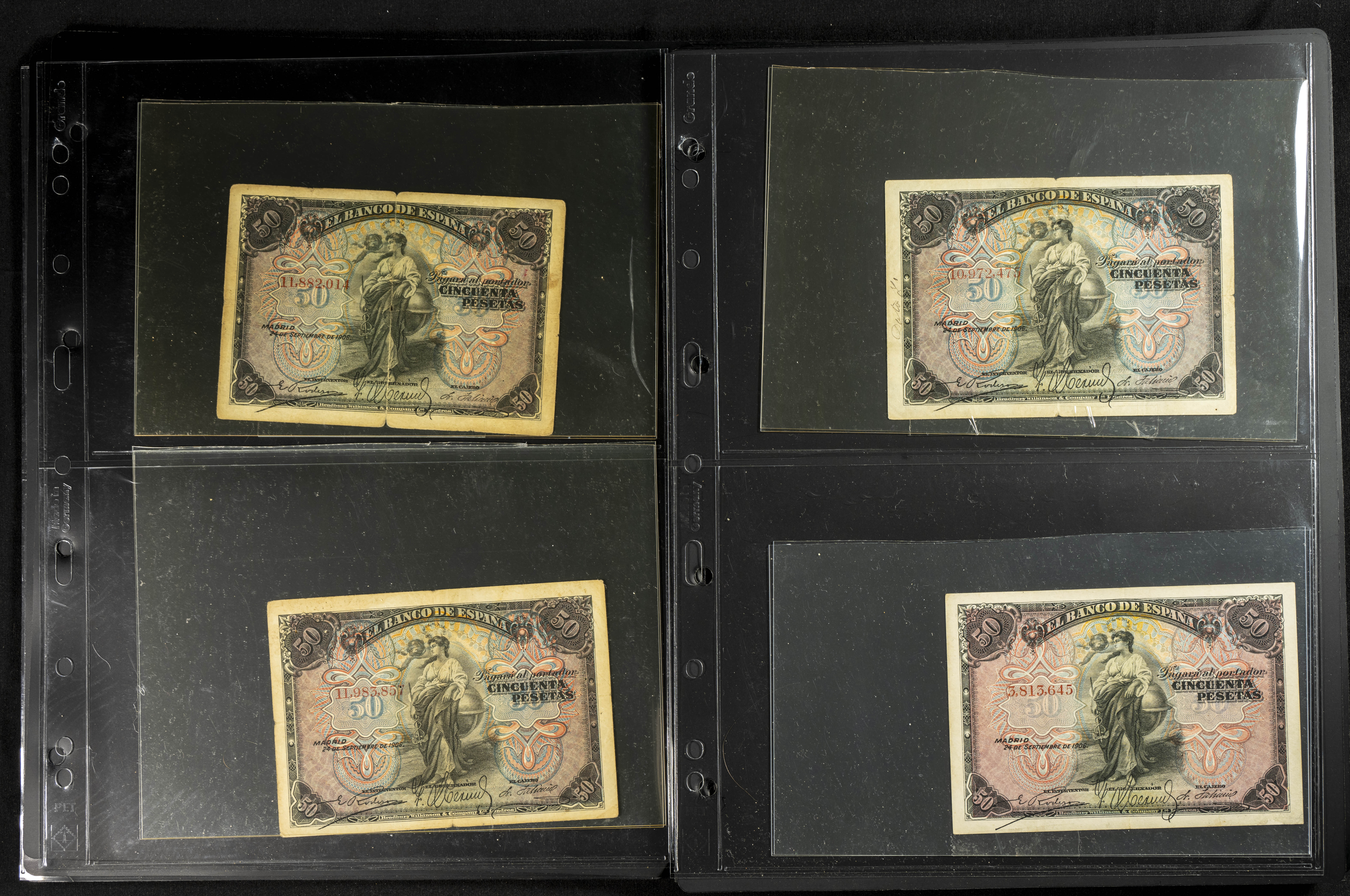 Espectacular resto de colección compuesta por innumerables billetes del siglo XX denominados todos en pesetas y emitidos por el Banco de España, incluye la casi totalidad de ejemplares puestos en circulación, muchos de ellos con un profundo estudio de las series (algunas raras), el conjunto llama su atención por la inclusión de billetes de gran valor y altas denominaciones, estas últimas en calidades no muy altas, pero muy solicitadas por los coleccionistas. OPORTUNIDAD DE HACERSE CON UN CONJUNTO DE GRAN ENVERGADURA TANTO PARA EL COLECCIONISTA COMO PARA REVENDER INDIVIDUALMENTE. IMPRESCINDIBLE EXAMINAR.