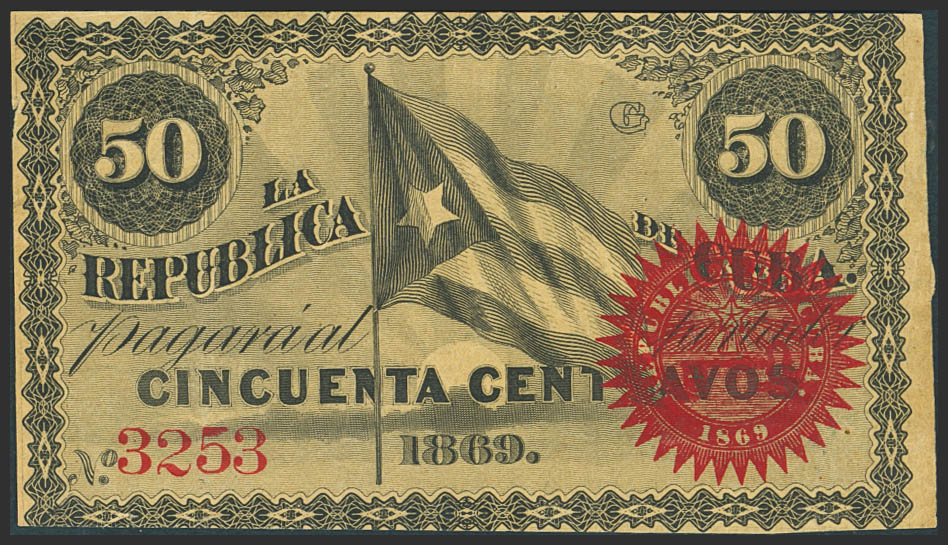 REPUBLICA DE CUBA. 50 Centavos. 1869. Serie H. (Edifil 2023: 30). Inusual. MBC+.