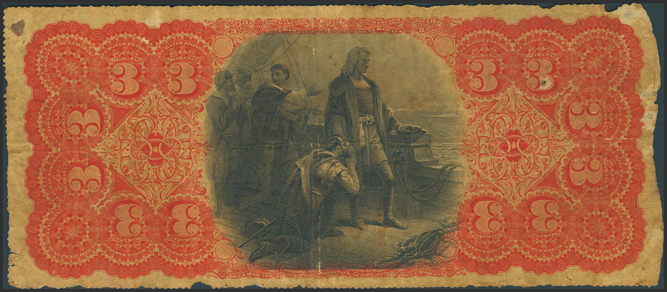 REPUBLICA DE CUBA. 3 Pesos. 15 de Mayo de 1879. Serie B. (Edifil 2023: 60). Rarísimo, claridades. BC-.