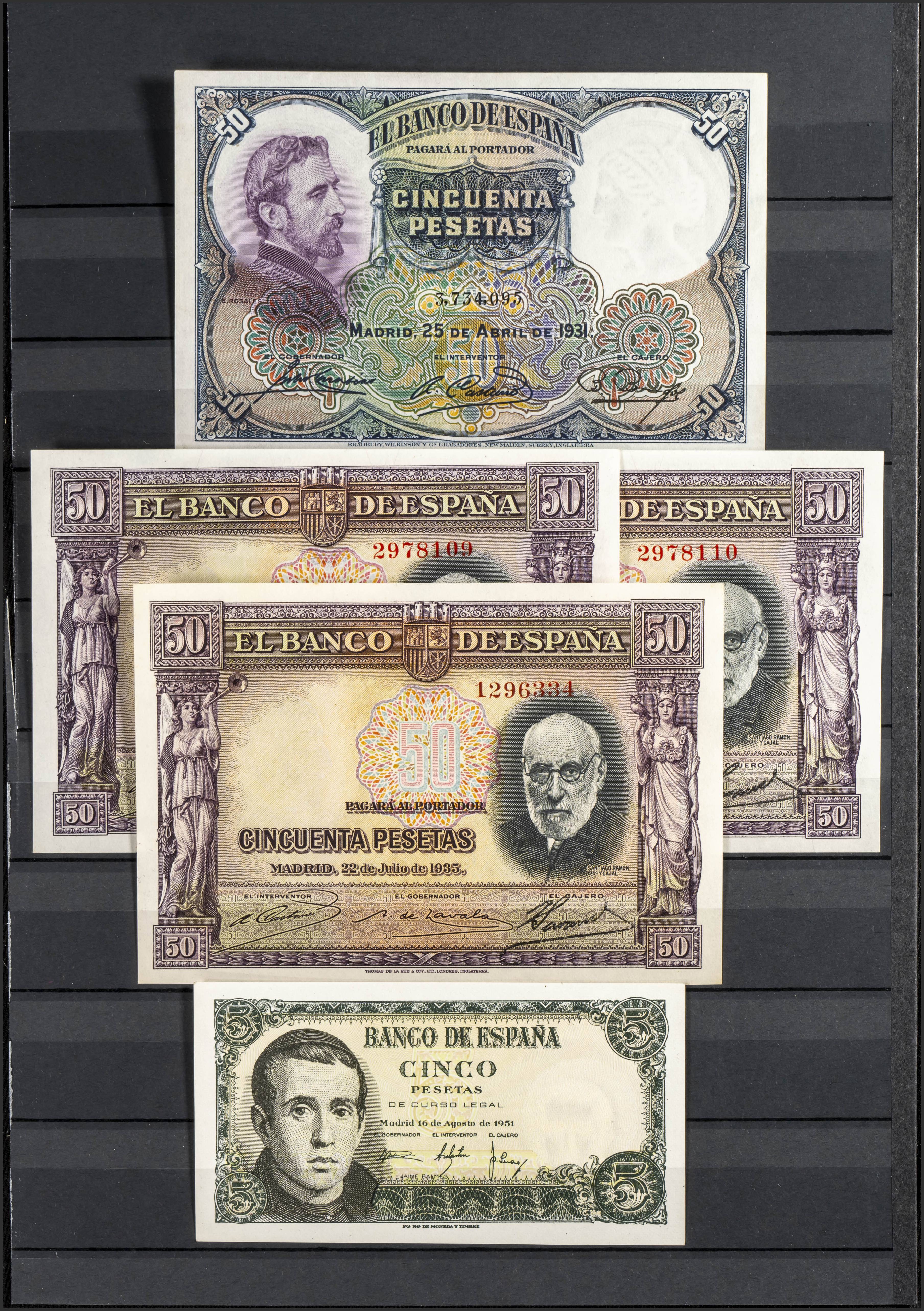 Conjunto de más de 5 billetes del Banco de España, de diferentes emisiones y en diversas calidades. A EXAMINAR.