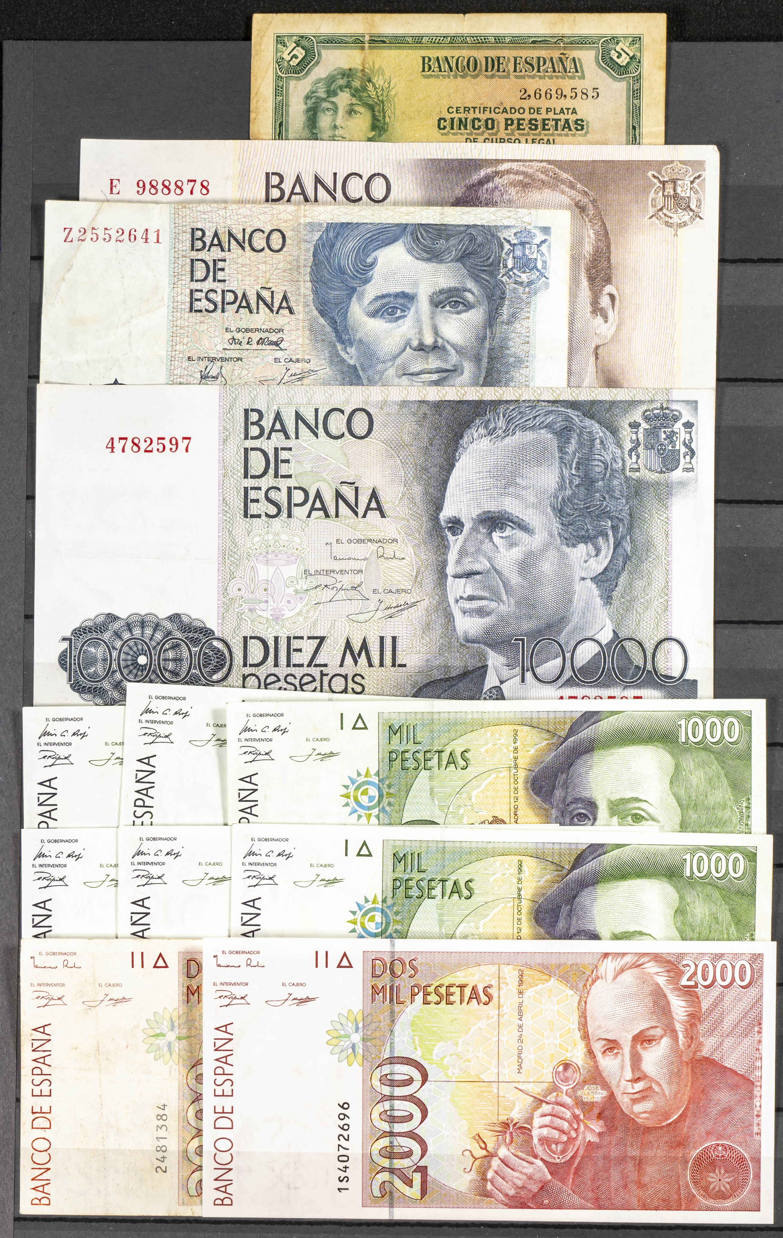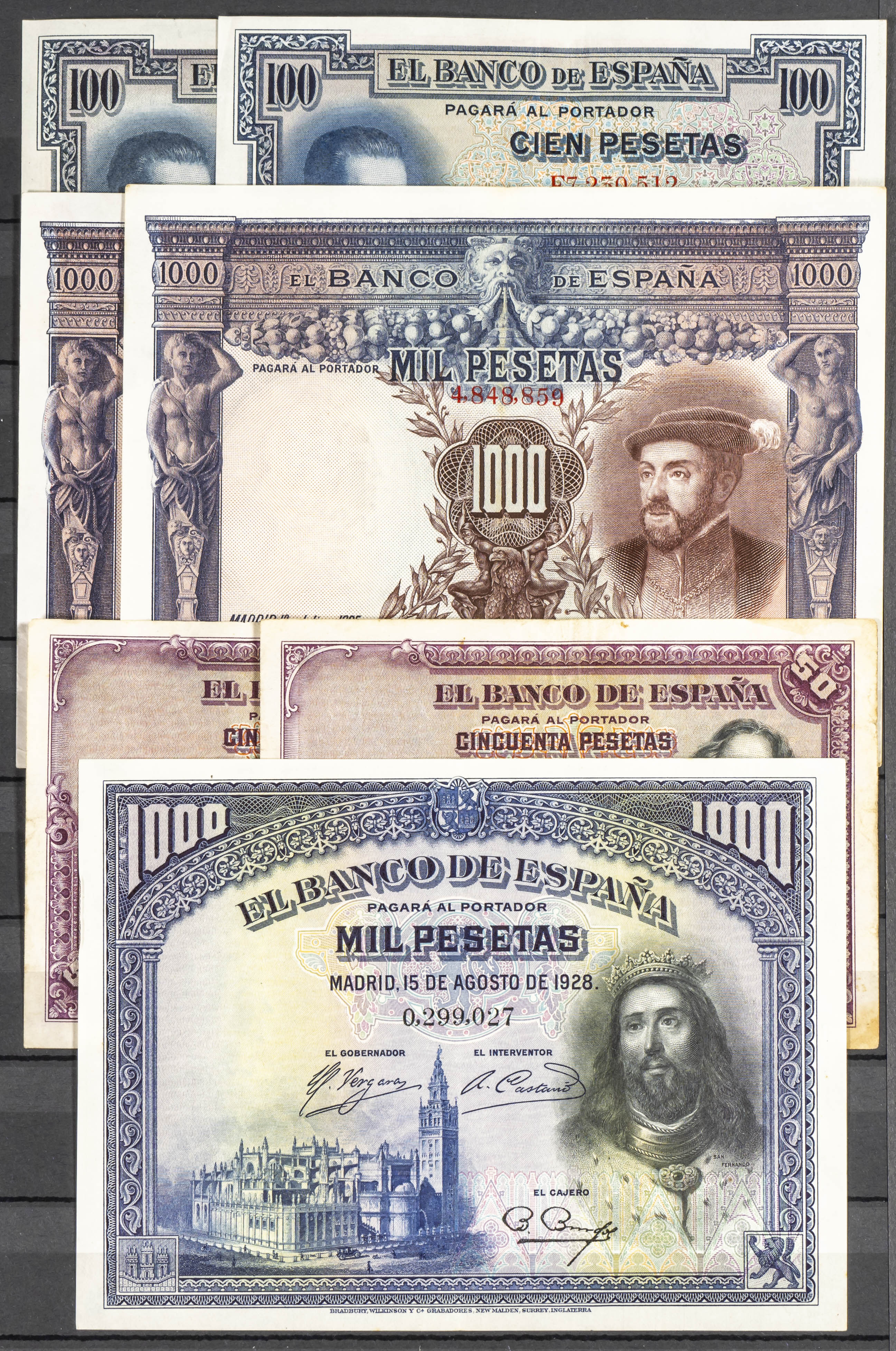 Conjunto de más de 15 billetes del Banco de España, de diferentes emisiones y en diversas calidades. A EXAMINAR.