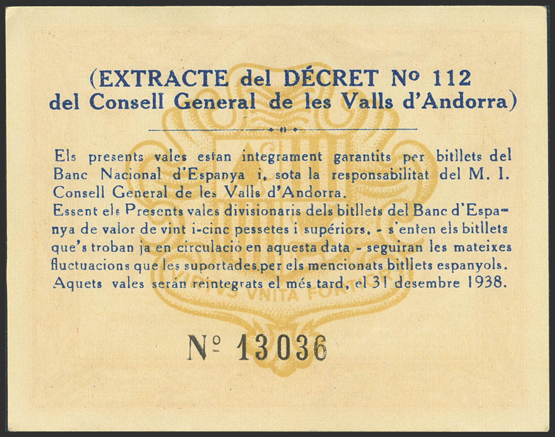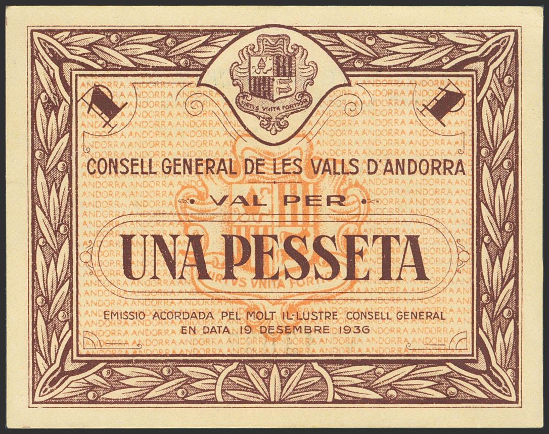 ANDORRA. 1 Pesseta. 1936. (Pick: 6). SC--.
