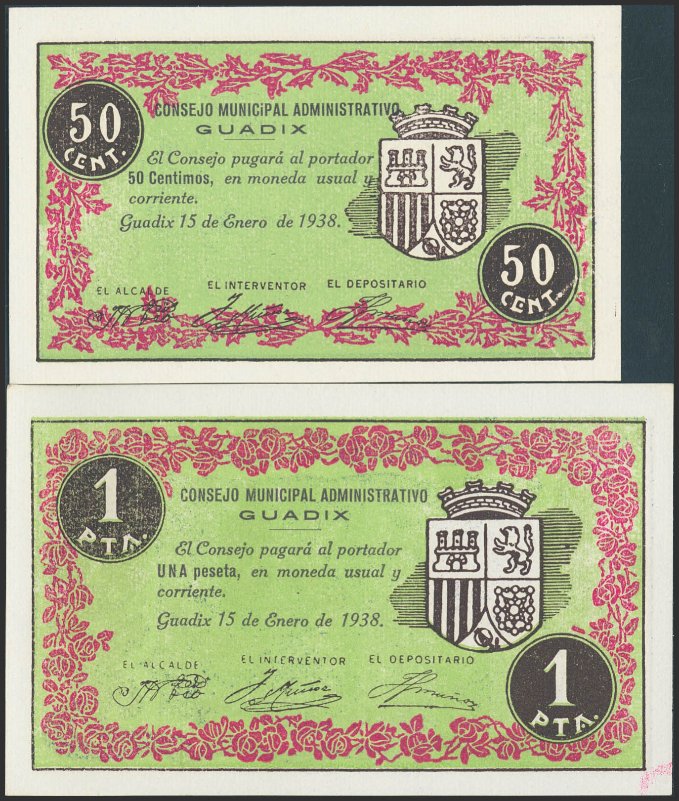 GUADIX (GRANADA). 50 Céntimos y 1 Peseta. 15 de Enero de 1938. (Pick: 2771, 2772). SC-.