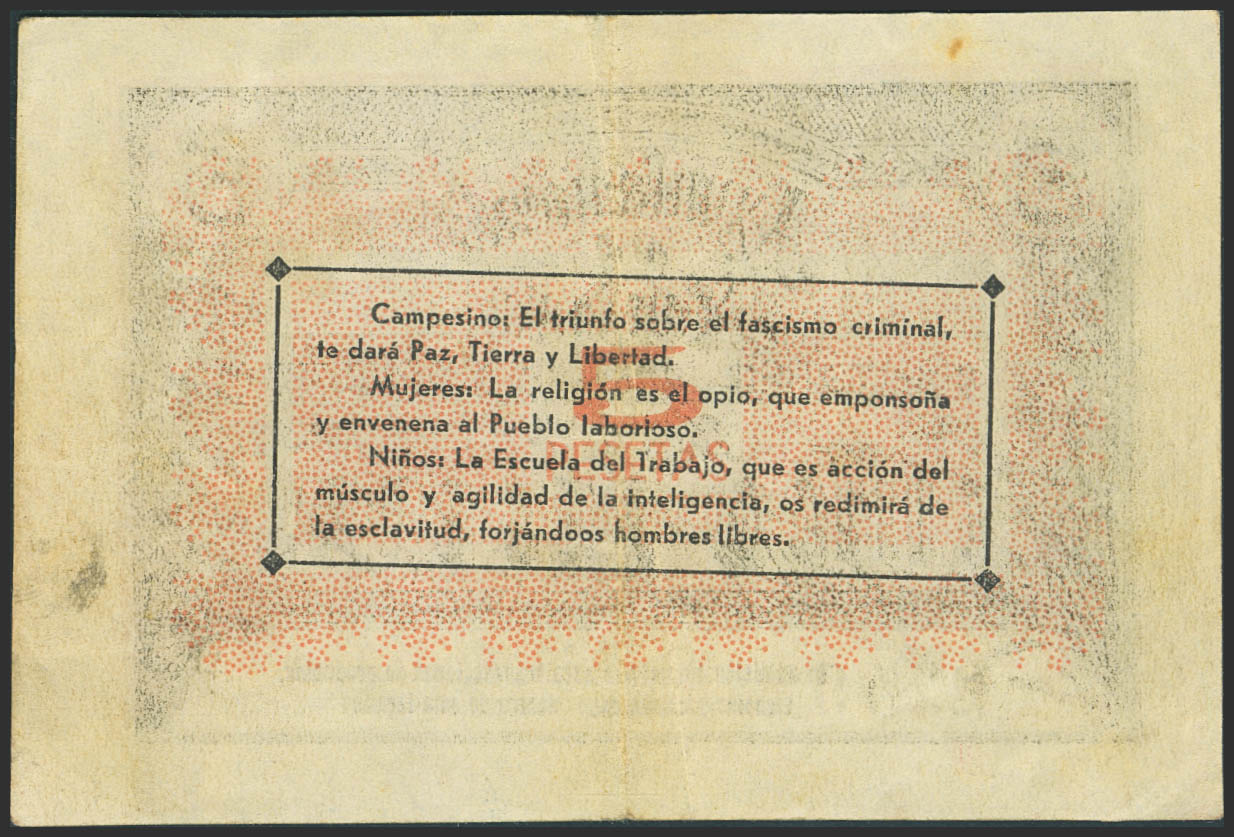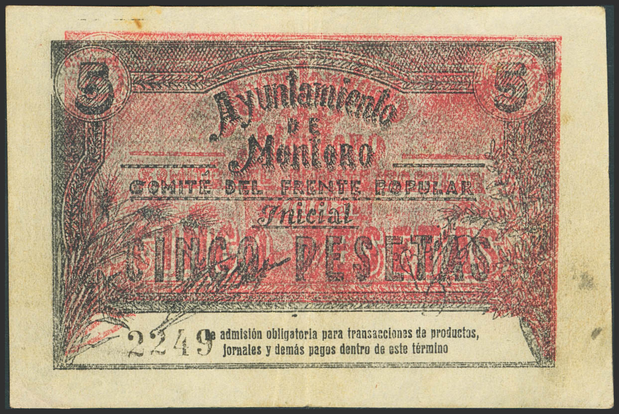 MONTORO (CORDOBA). 5 Pesetas. (1937ca). (Pick: 3668). Raro. MBC+.