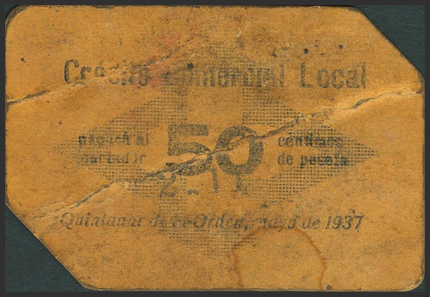 QUINTANAR DE LA ORDEN (TOLEDO). 50 Céntimos. Mayo de 1937. (Pick: 4448). Raro. BC.