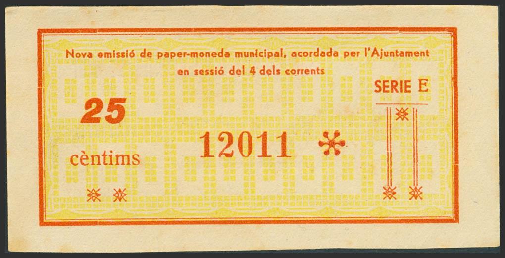 AMETLLA DE MAR (TARRAGONA). 25 Céntimos. Noviembre de 1937. (Pick: 6252). SC-.