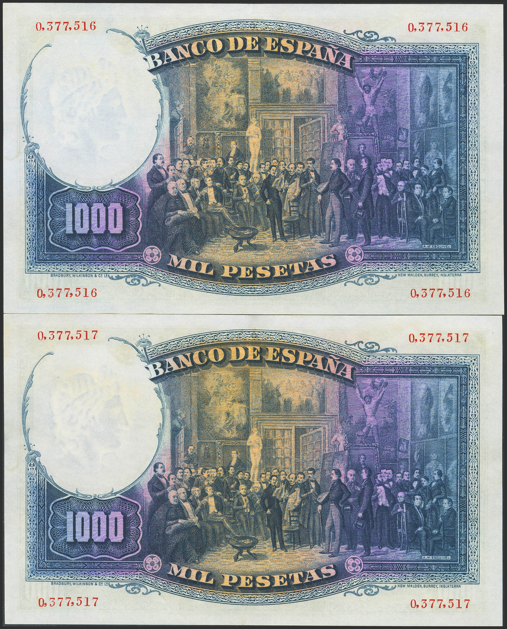 1000 Pesetas. 25 de Abril de 1931. Pareja correlativa. Sin serie. (Edifil 2023: 362, Pick: 84Aa). SC--.