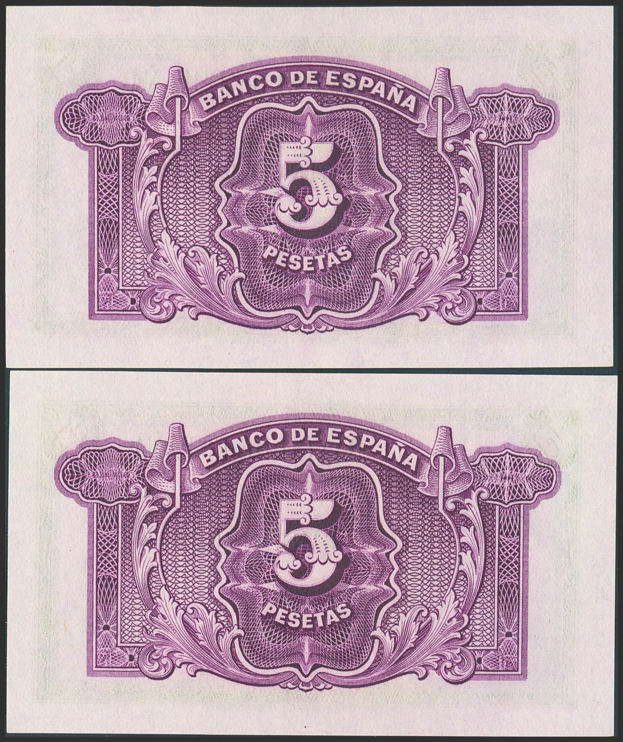 5 Pesetas. 1935. Certificado de Plata. Pareja correlativa. Serie J. (Edifil 2023: 363b). Apresto original. SC.