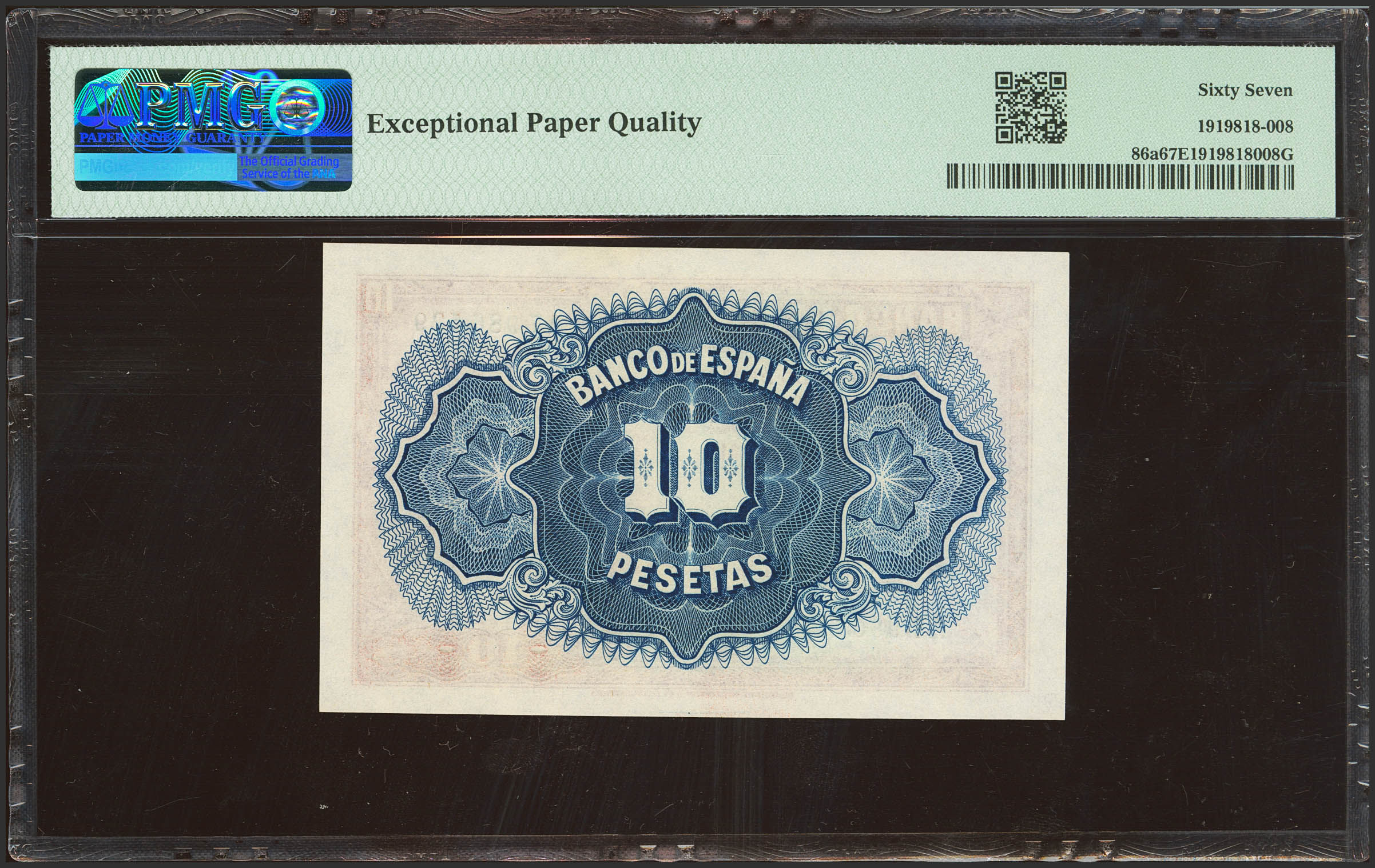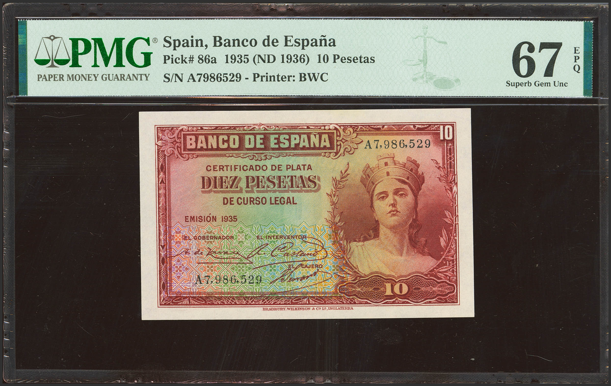 10 Pesetas. 1935. Certificado de Plata. Serie A. (Edifil 2023: 364a, Pick: 86a). Inusual en esta excepcional calidad, apresto original. SC. Encapsulado PMG67EPQ.