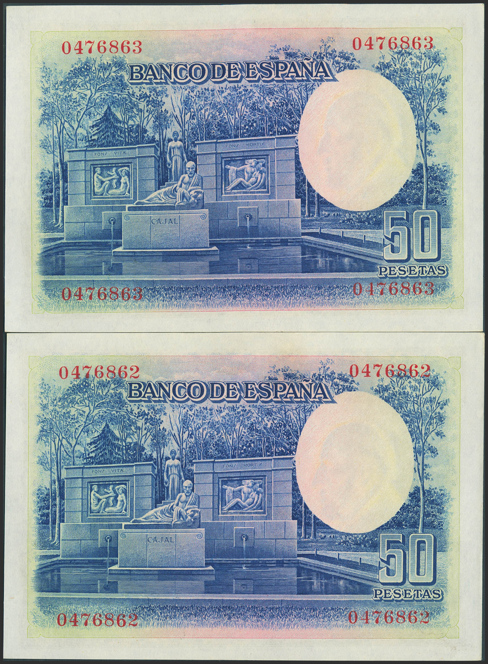 50 Pesetas. 22 de Julio de 1935. Pareja correlativa. Sin serie. (Edifil 2023: 366). Apresto original. SC.