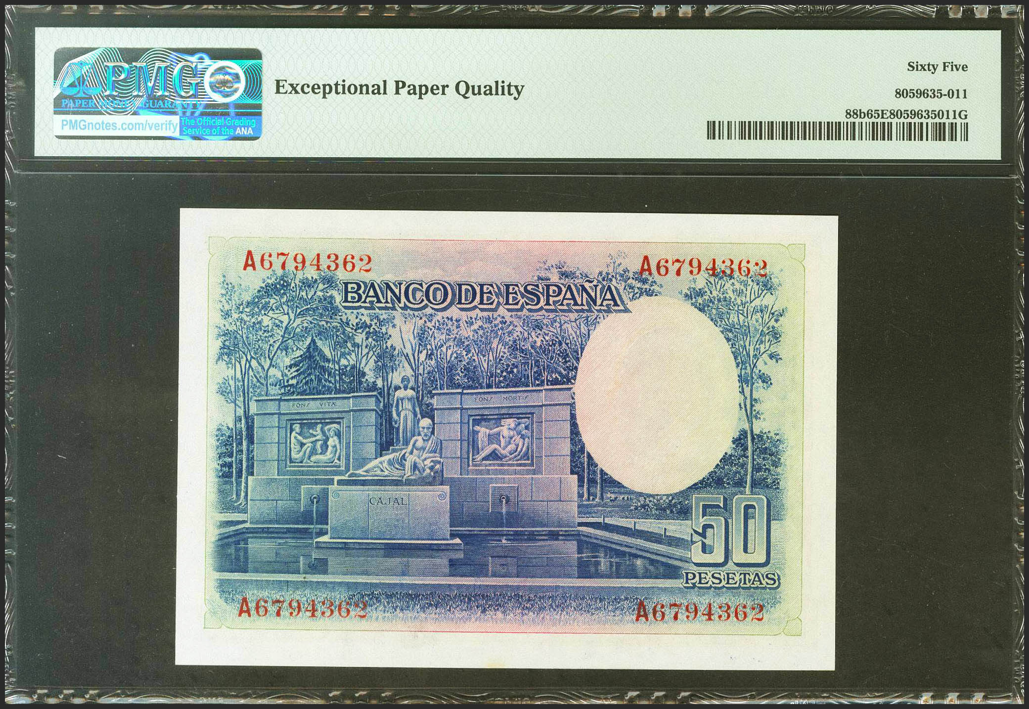 50 Pesetas. 22 de Julio de 1935. Serie A. (Edifil 2021: 366a, Pick: 88b). Apresto original. SC. Encapsulado PMG65EPQ.