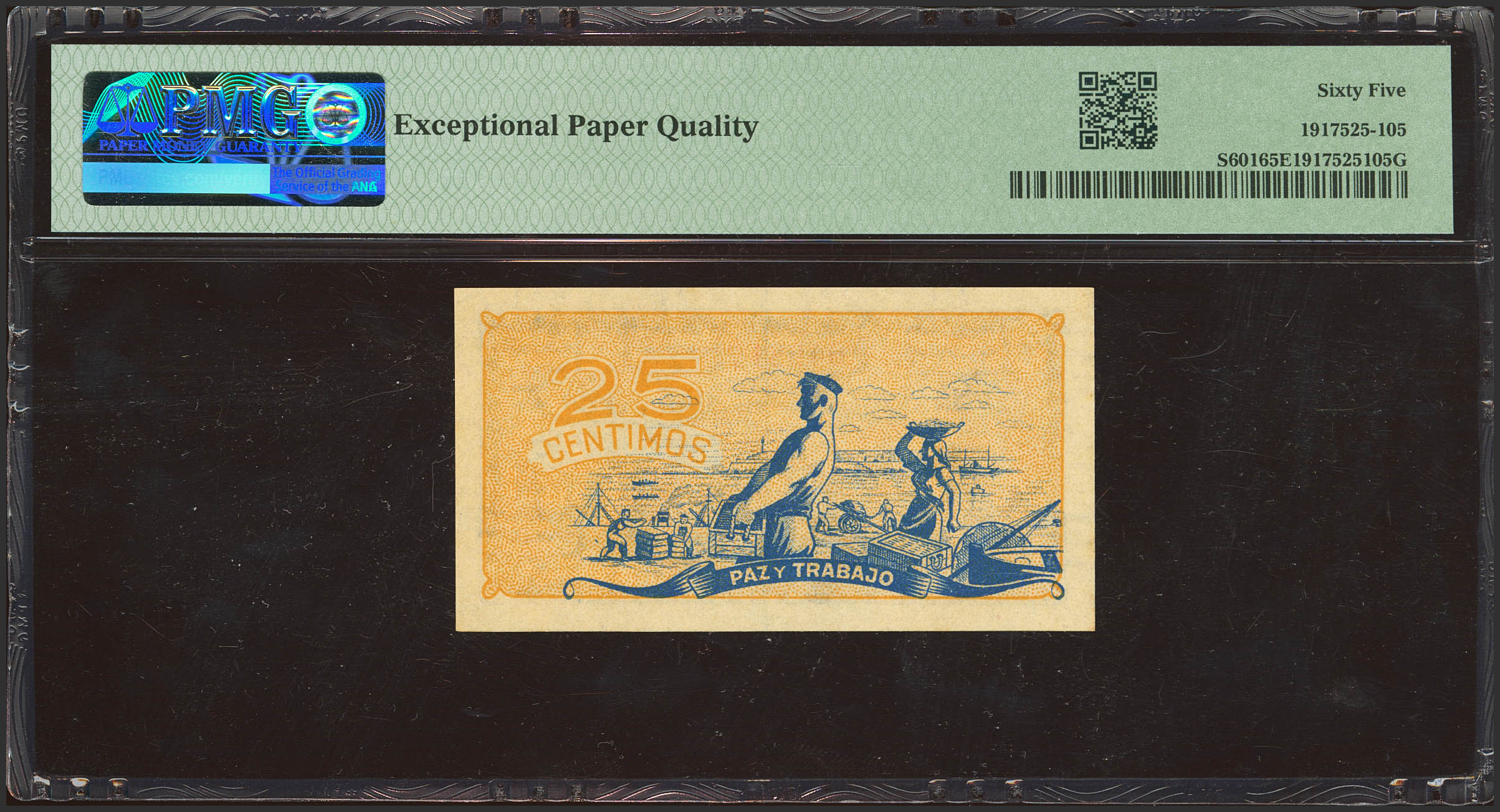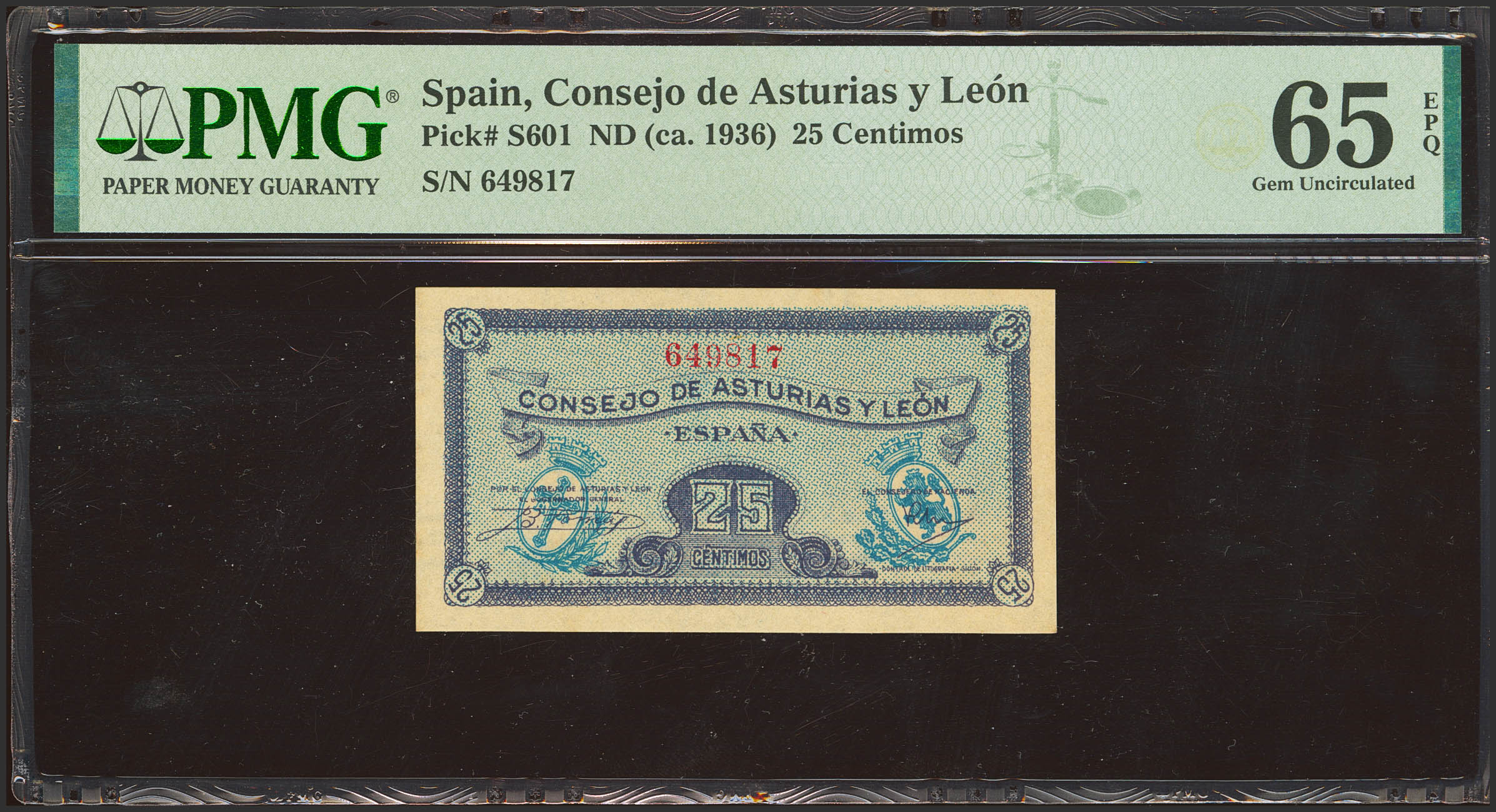 25 Céntimos. 1937. Asturias y León. Sin serie. (Edifil 2023: 394, Pick: S601). Apresto original. SC. Encapsulado PMG65EPQ.