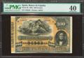 100 Pesetas. 1 de Enero de 1884. Sin serie. (Edifil 2023: 284, Pick: 26). Muy raro, en esta calidad y mínimamente reparado. MBC+. Encapsulado PMG40 (minor repairs). (para hacernos idea de la rareza, a fecha 1 de Mayo de 2025, este billete es el segundo mejor calificado junto a otros dos billetes en PMG)
