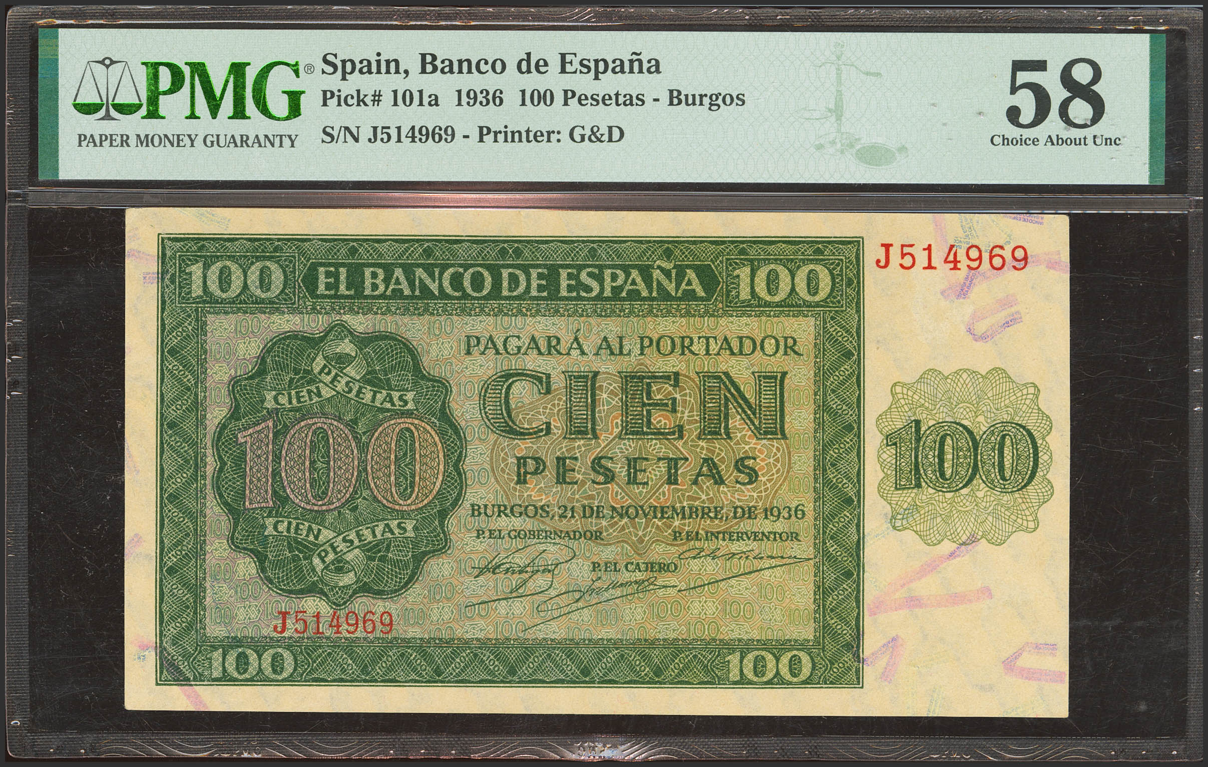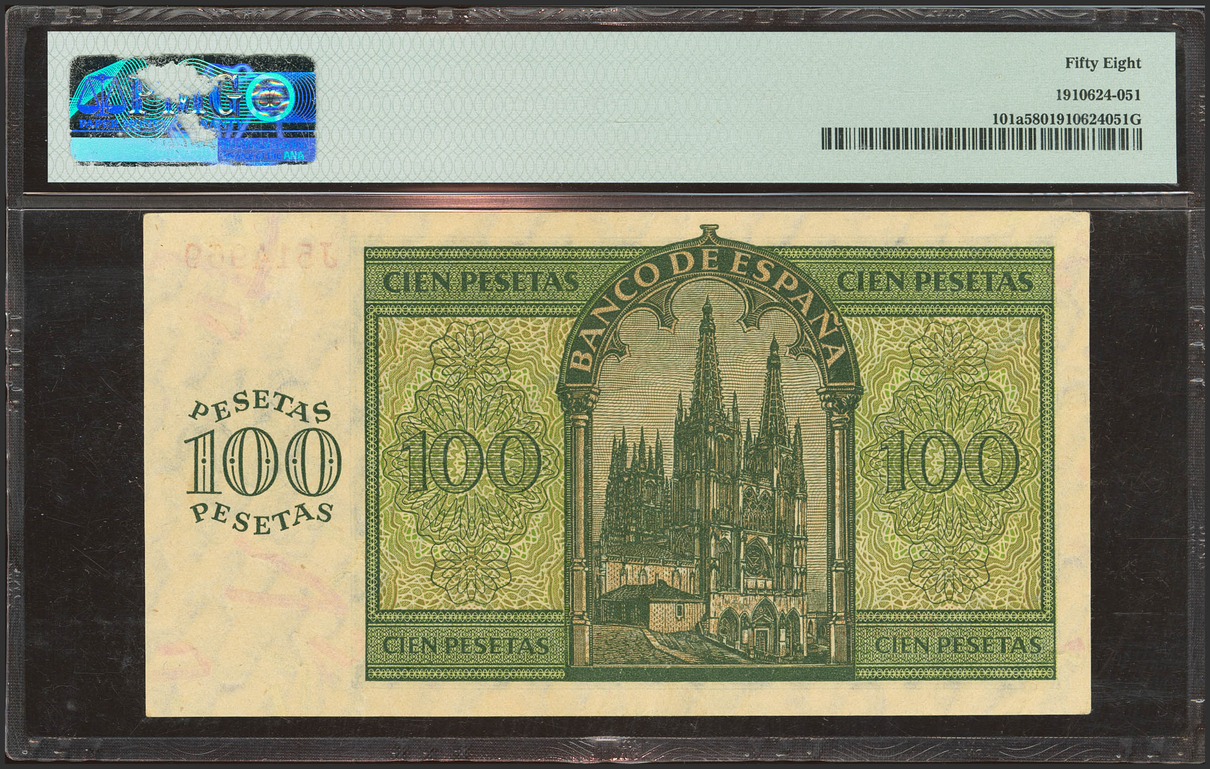 100 Pesetas. 21 de Noviembre de 1936. Serie J. (Edifil 2023: 421a, Pick: 101a). EBC++. Encapsulado PMG58.
