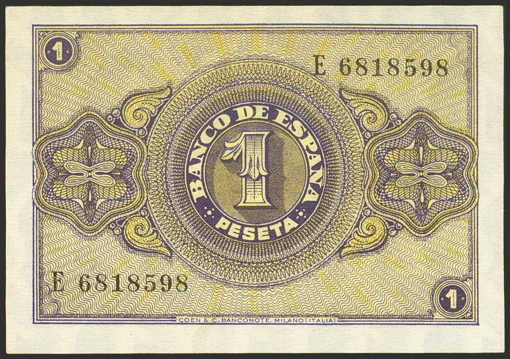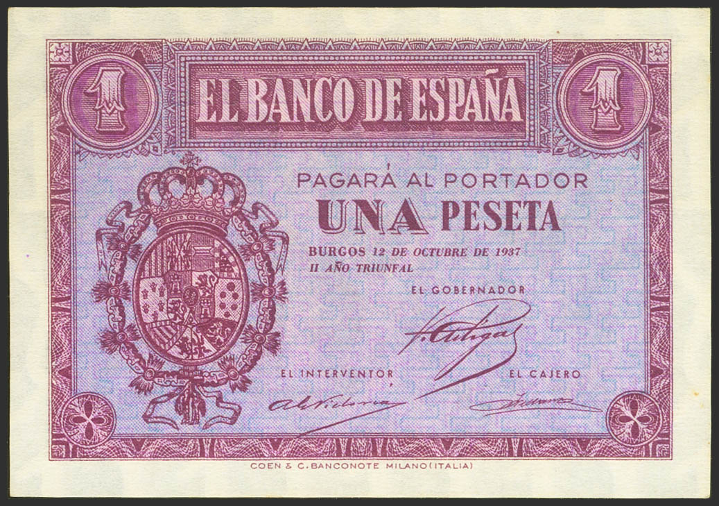 1 Peseta. 12 de Octubre de 1937. Serie E. (Edifil 2021: 425a). Conserva todo su apresto original. SC--.