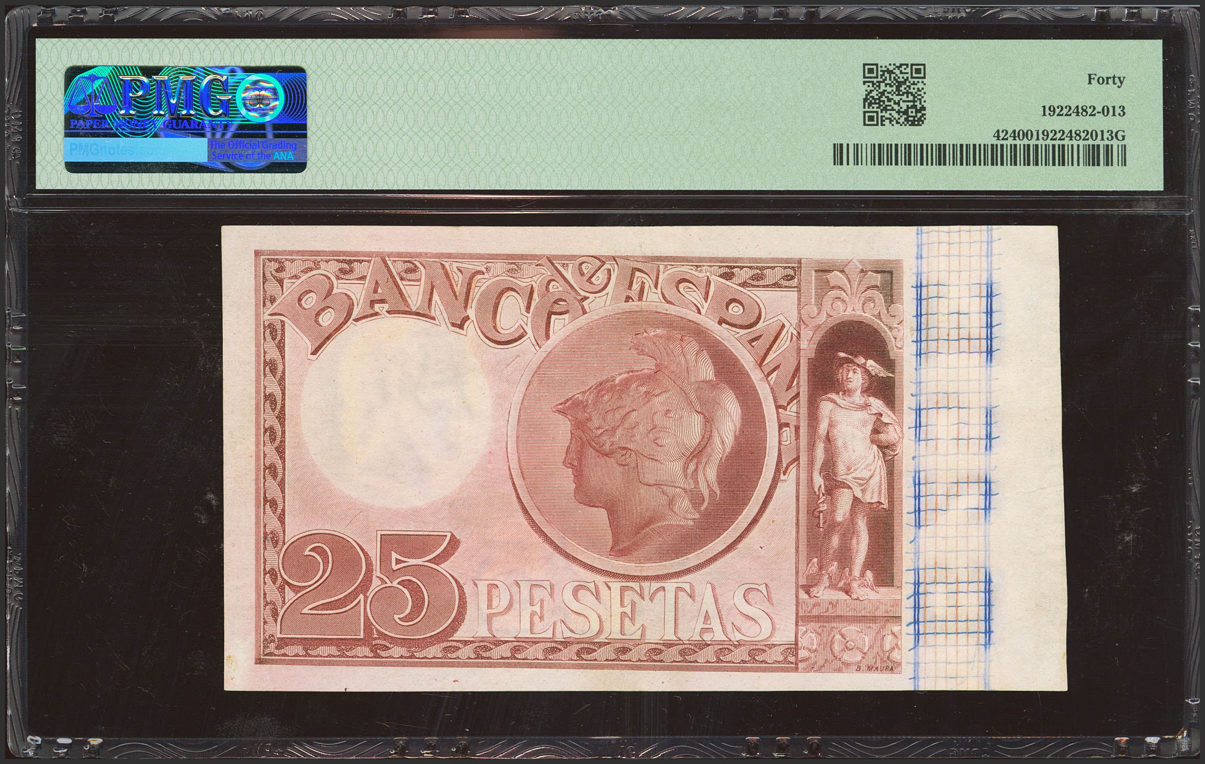 25 Pesetas. 24 de Julio de 1893. Sin serie. (Edifil 2023: 300, Pick: 42). Raro especialmente en esta excepcional calidad, sin ninguna reparación. EBC-. Encapsulado PMG40.