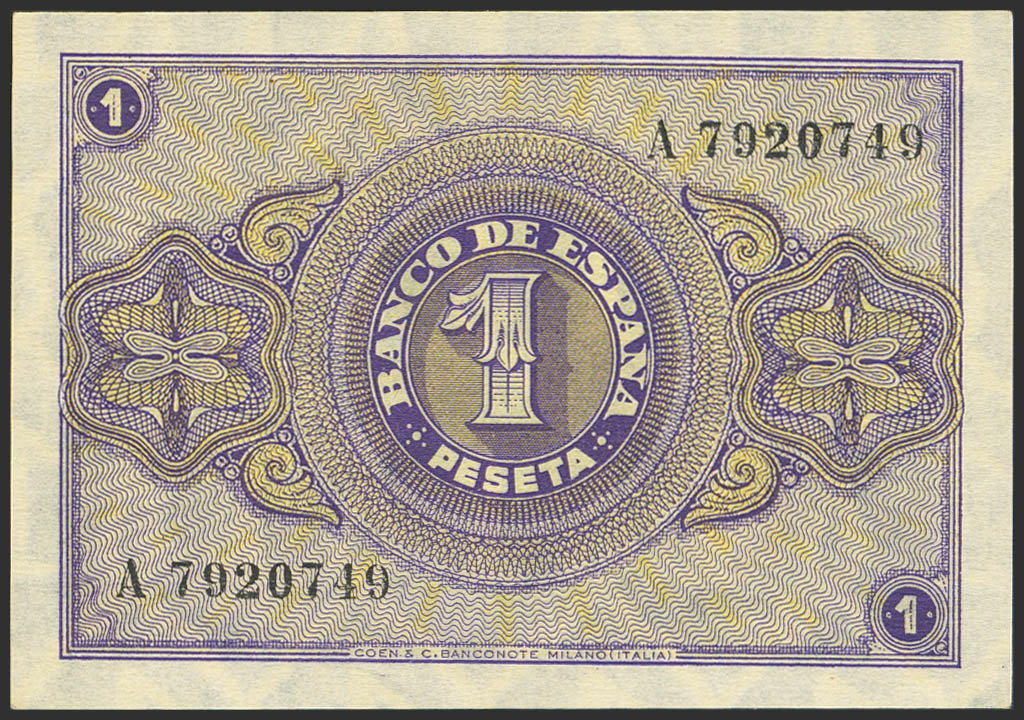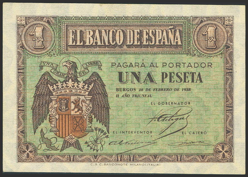 1 Pesetas. 28 de Febrero de 1938. Serie A. (Edifil 2023: 427). Apresto original. SC.
