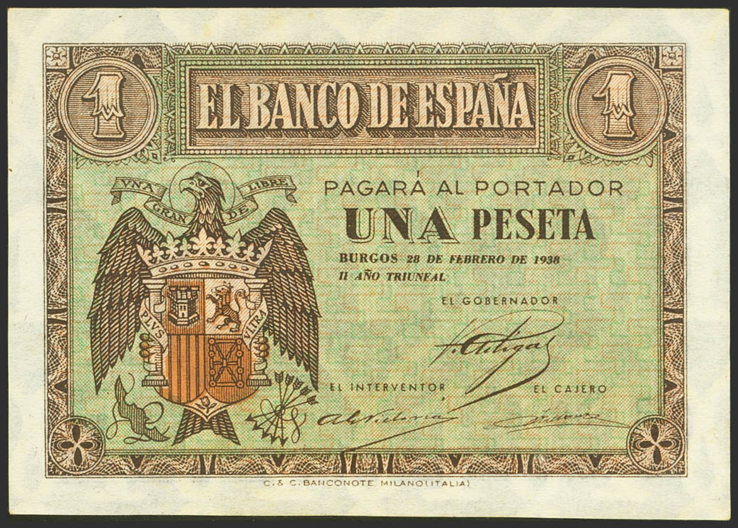1 Peseta. 28 de Febrero de 1938. Serie B. (Edifil 2021: 427a). Apresto original. SC-.