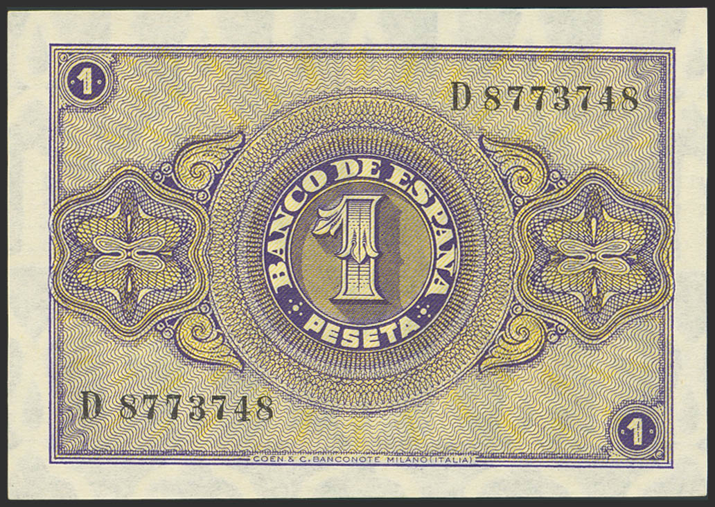 1 Peseta. 28 de Febrero de 1938. Serie D. (Edifil 2023: 427a). Conserva todo su apresto original. SC.