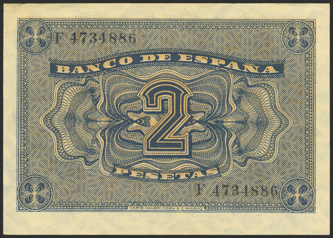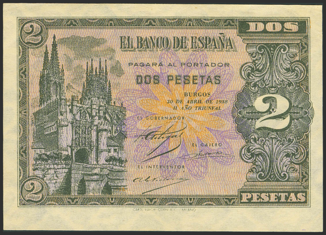 2 Pesetas. 30 de Abril de 1938. Serie F. (Edifil 2023: 429a). Apresto original. SC-.