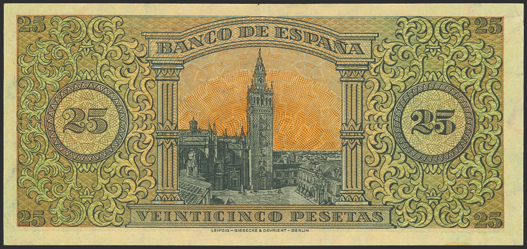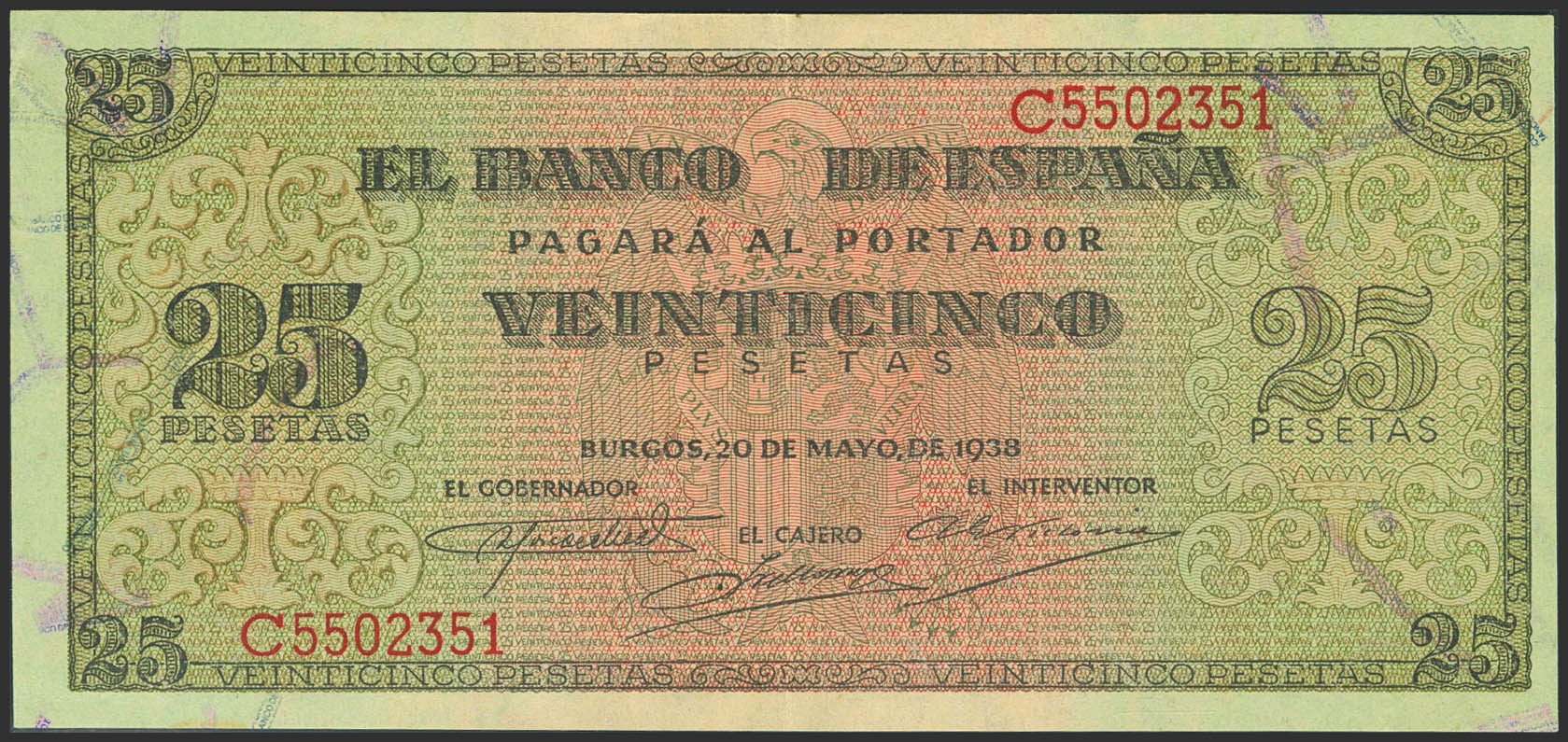 25 Pesetas. 20 de Mayo de 1938. Serie C. (Edifil 2023: 430a). Conserva parte de su apresto original. EBC.