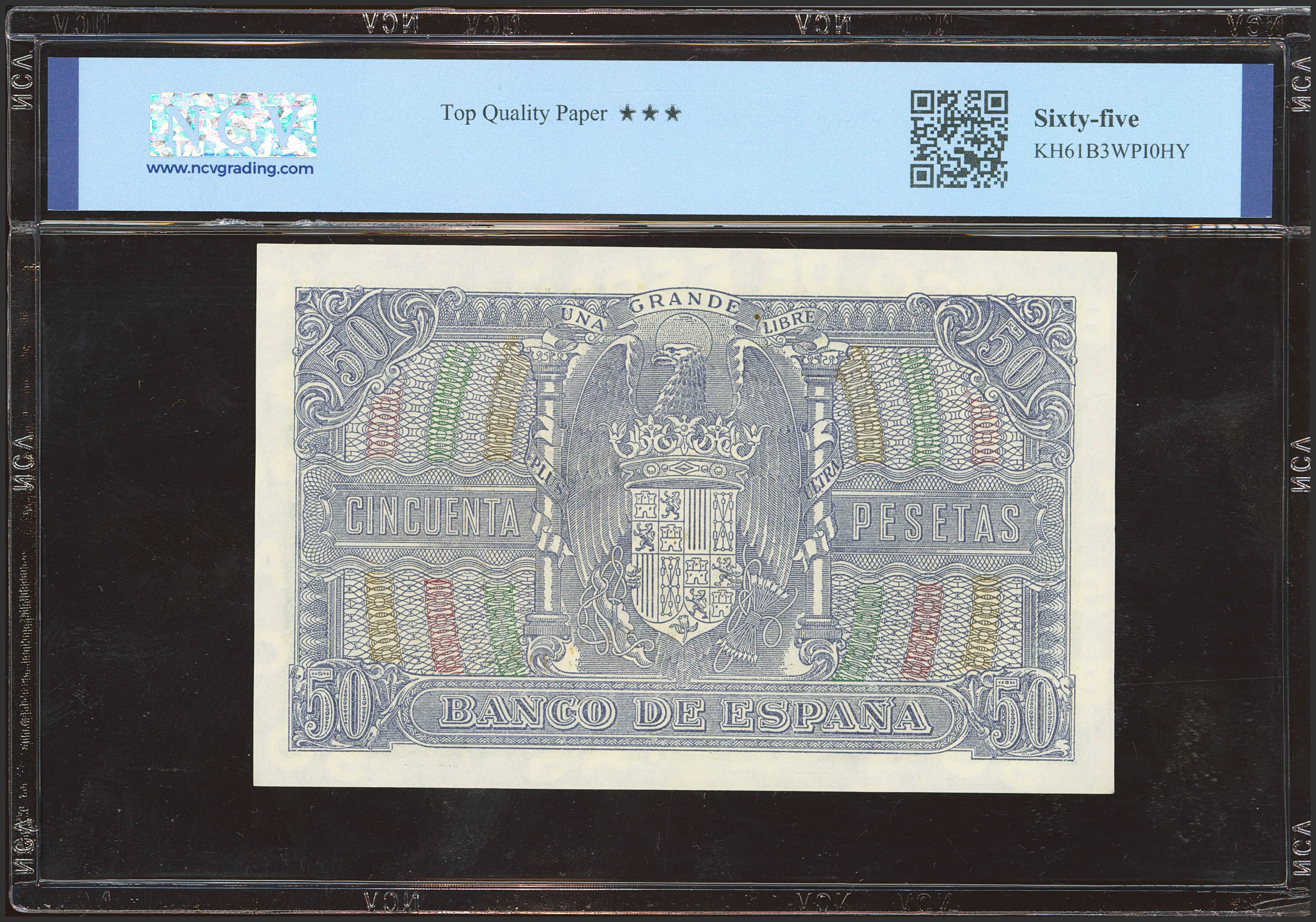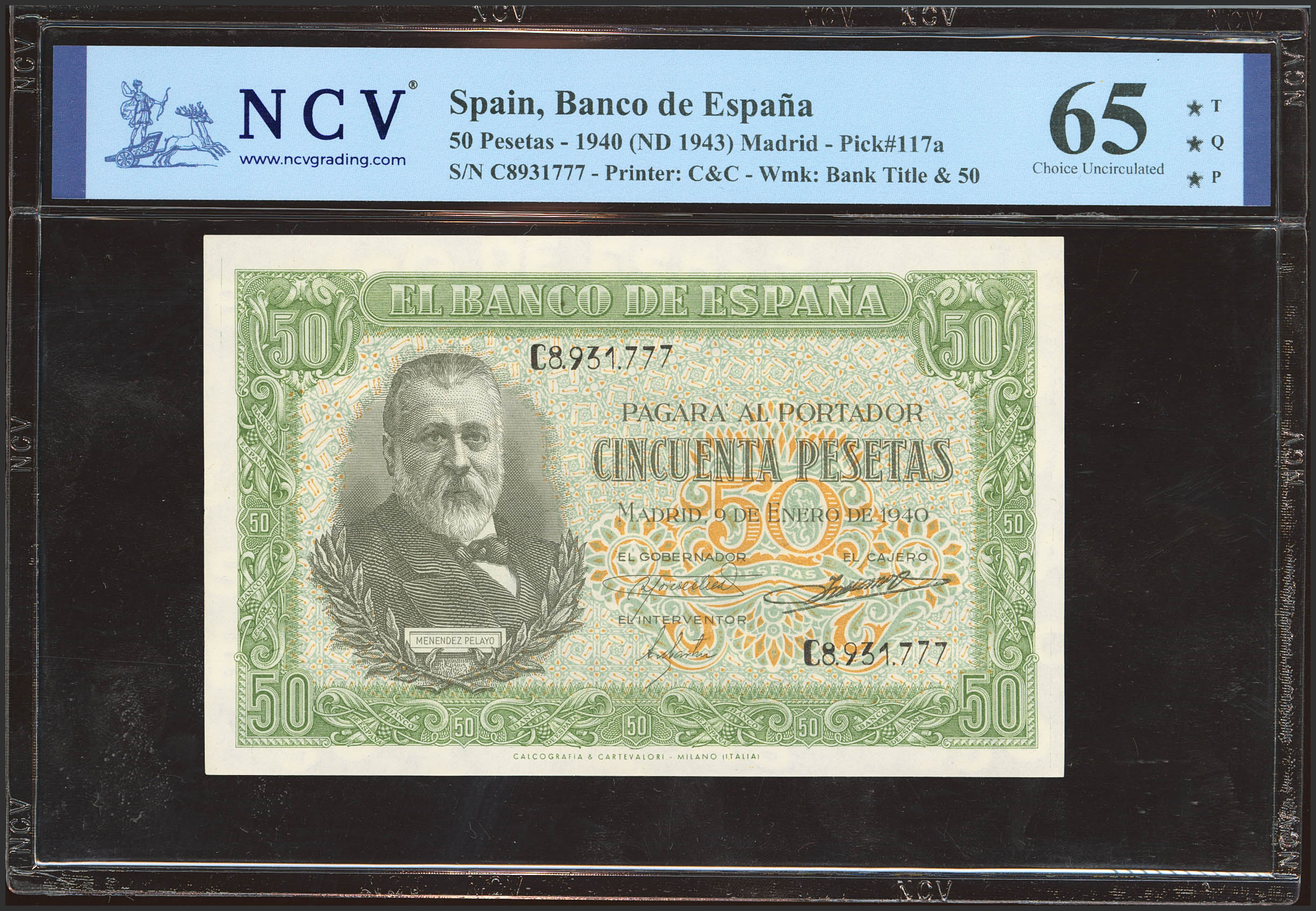 50 Pesetas. 9 de Enero de 1940. Serie C. (Edifil 2023: 437a, Pick: 117a). Inusual en esta calidad, apresto original. SC. Encapsulado NCV65TQP.