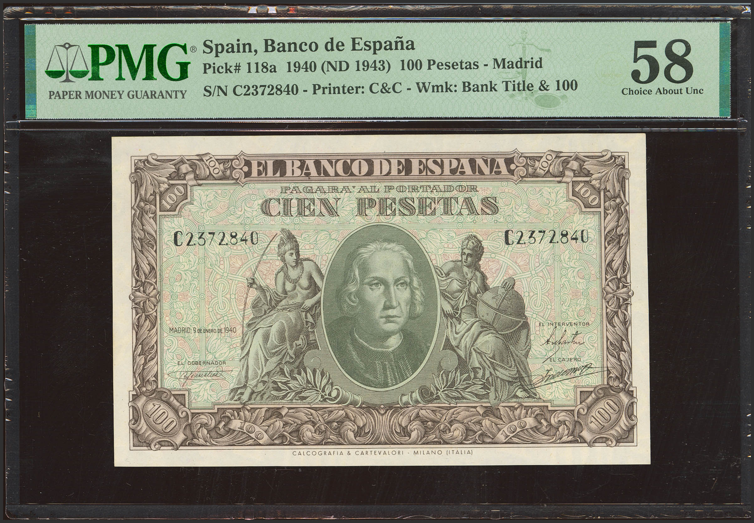 100 Pesetas. 9 de Enero de 1940. Serie C. (Edifil 2023: 438a, Pick: 118a). EBC++. Encapsulado PMG58.