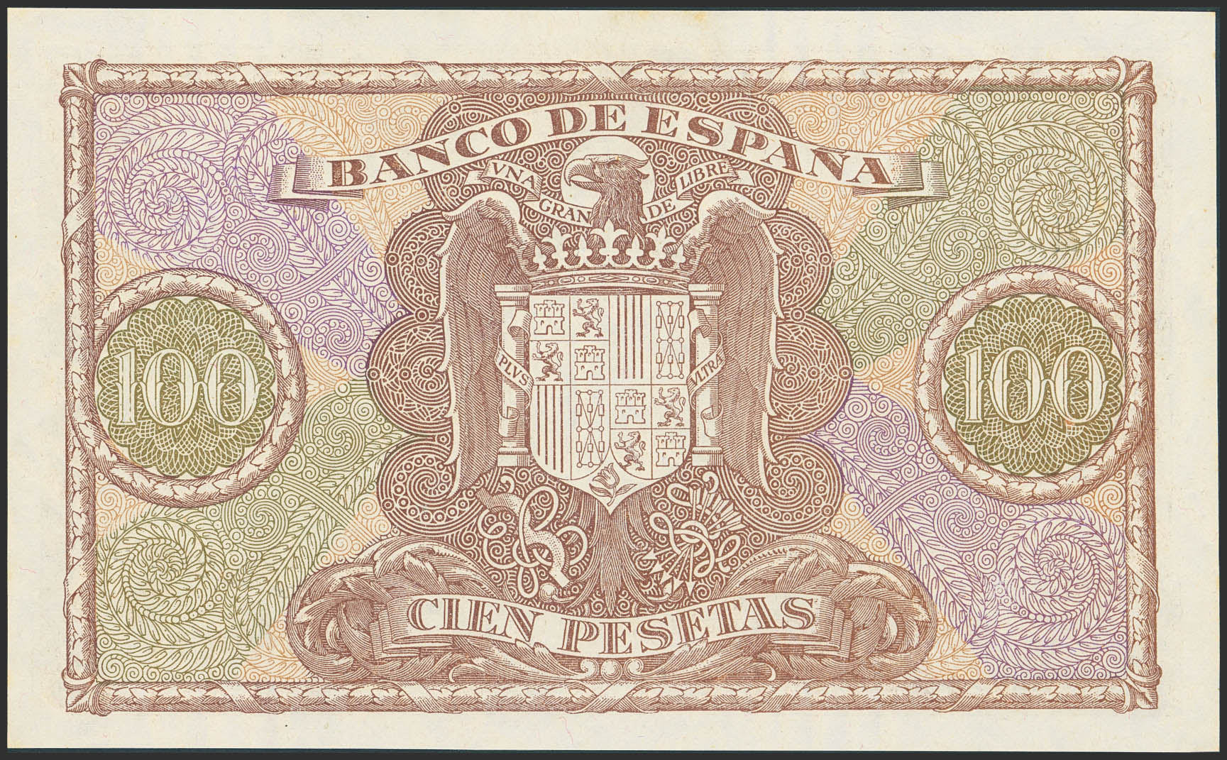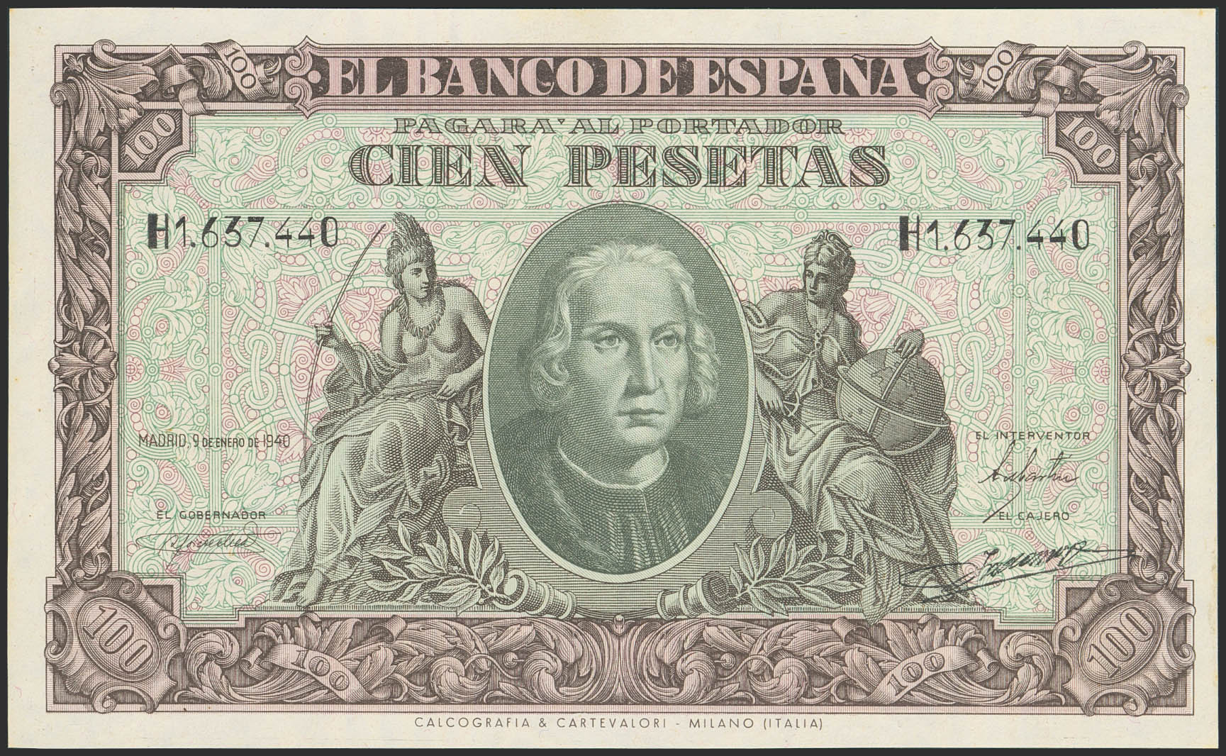 100 Pesetas. 9 de Enero de 1940. Serie H. (Edifil 2021: 438a). Inusual y apresto original. SC-.